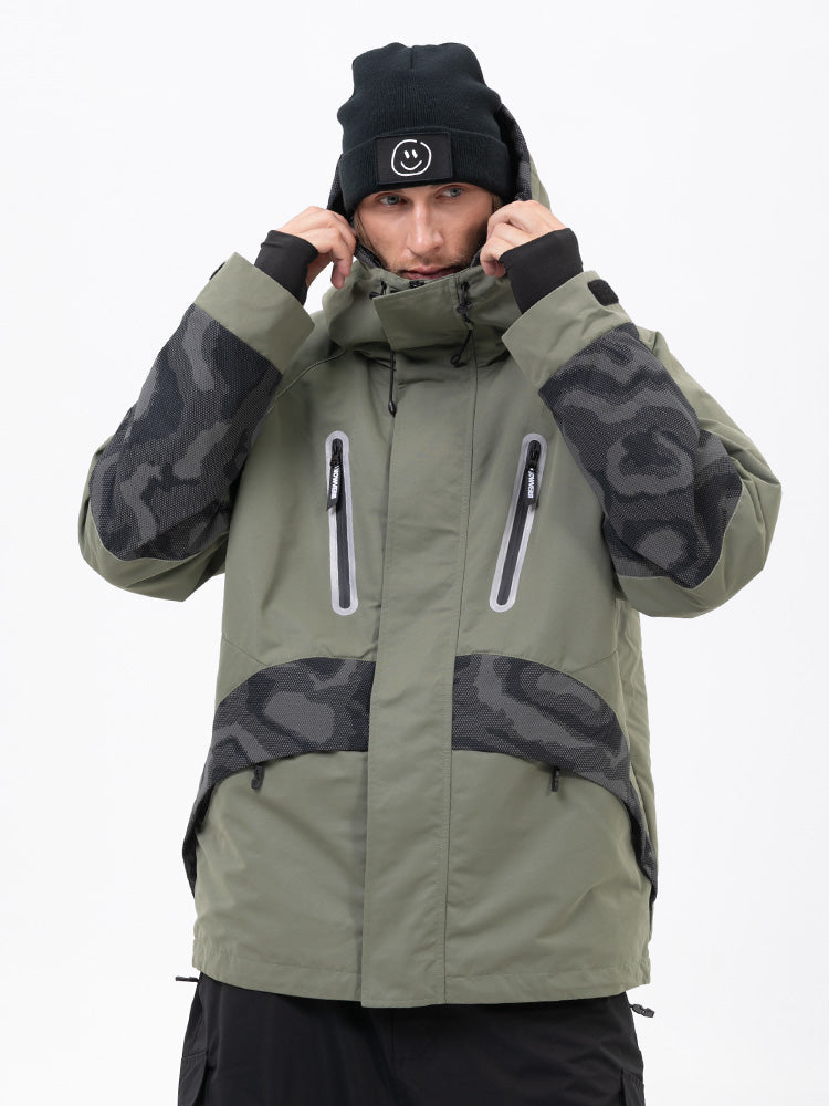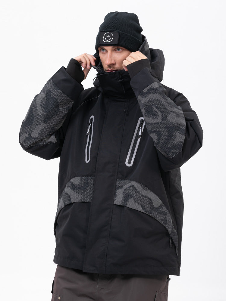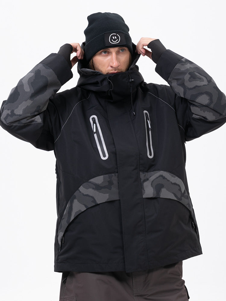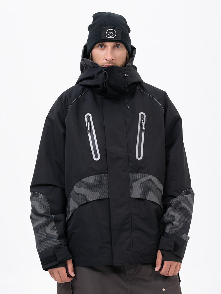 Reflective Camo Stripes on the sleeves & hand pockets add a bold touch while enhancing visibility during low-light mountain treks.