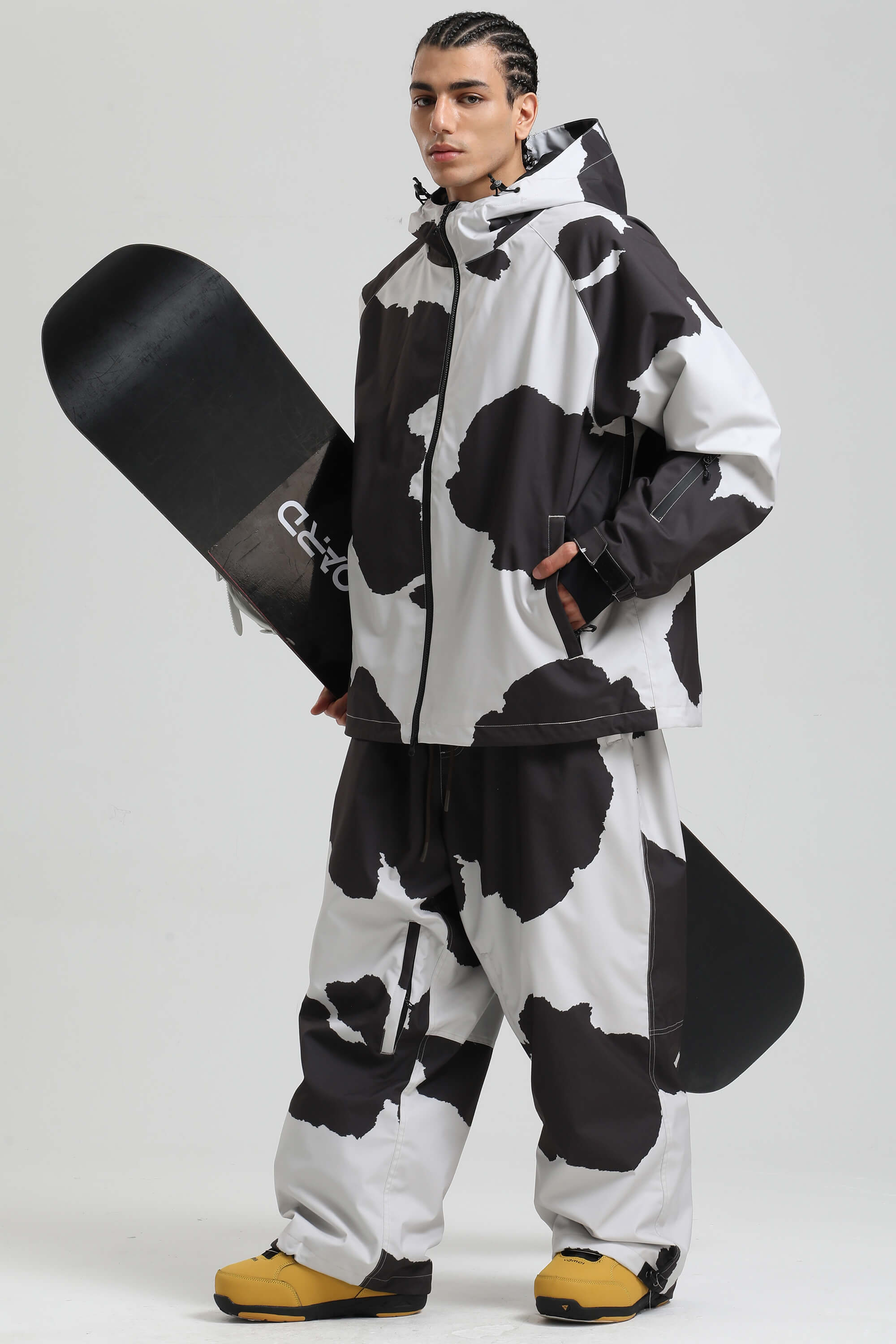 Men's Cow Print Dual-Vent Minimalist Waterproof Insulated Snow Jacket