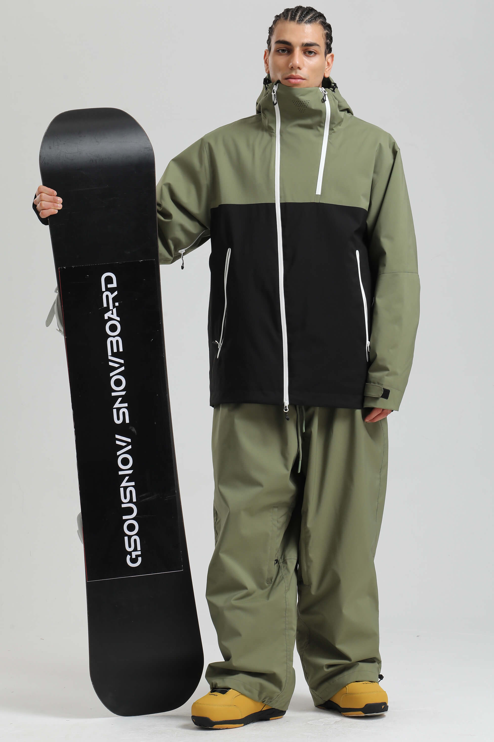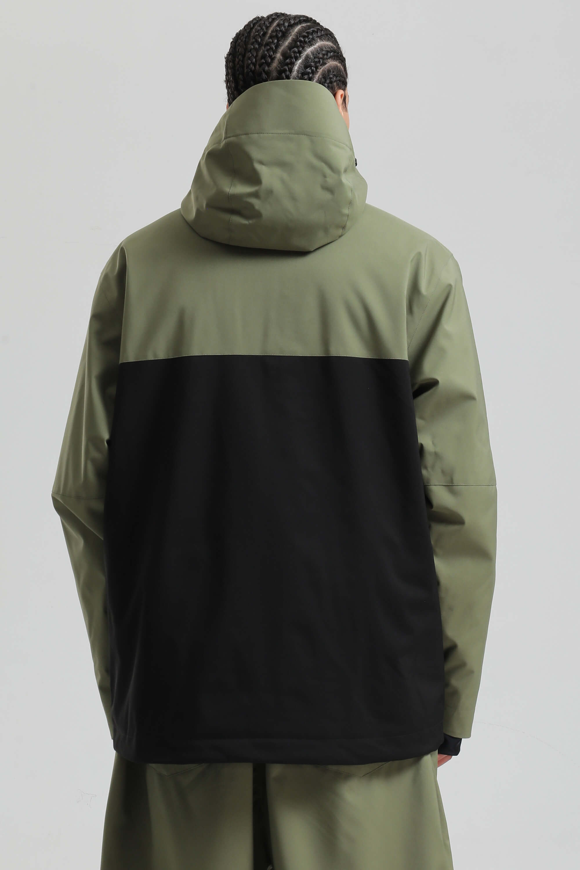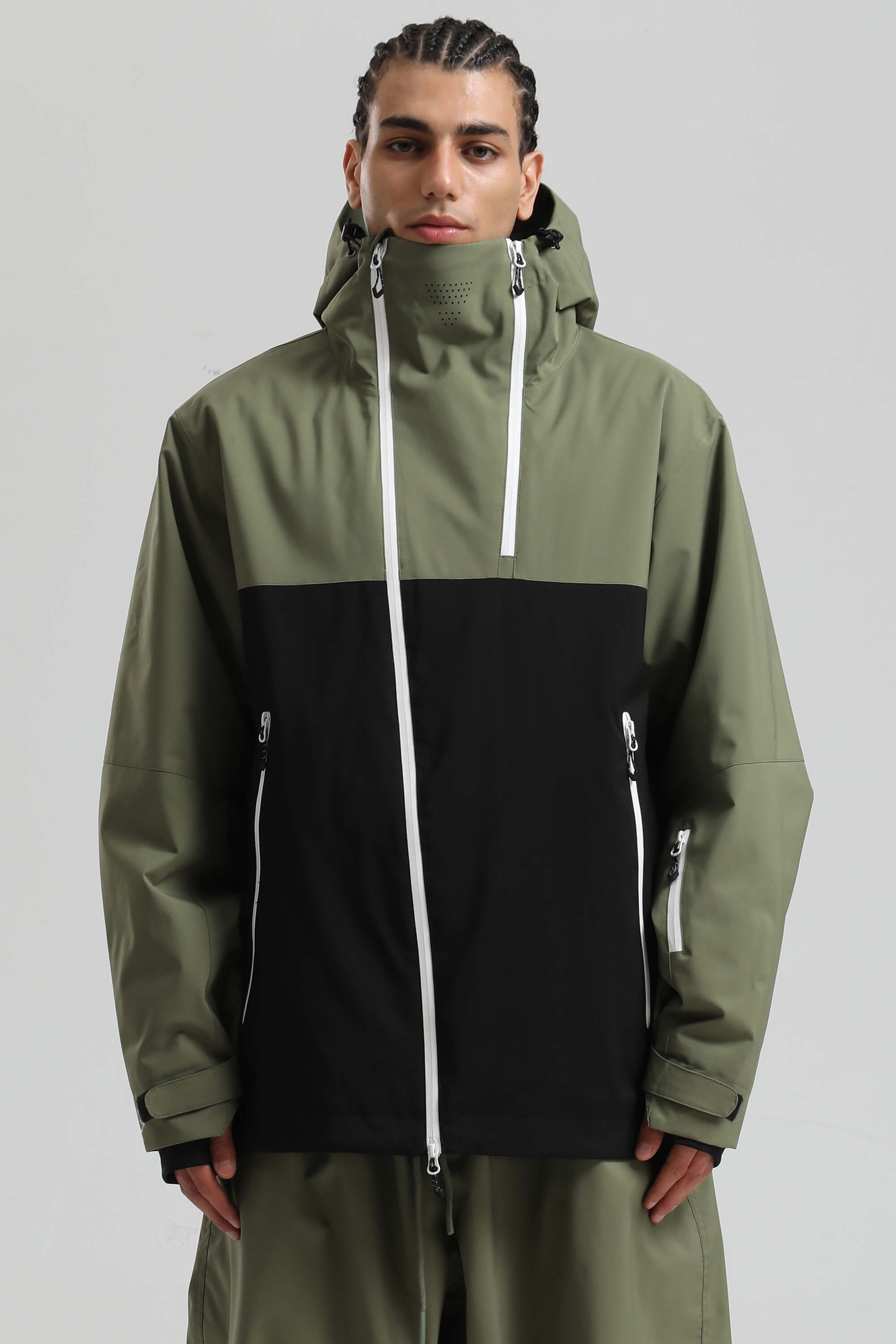 Men's Green & Black Face Vent Asym-Zip Waterproof Insulated Snow Jacket