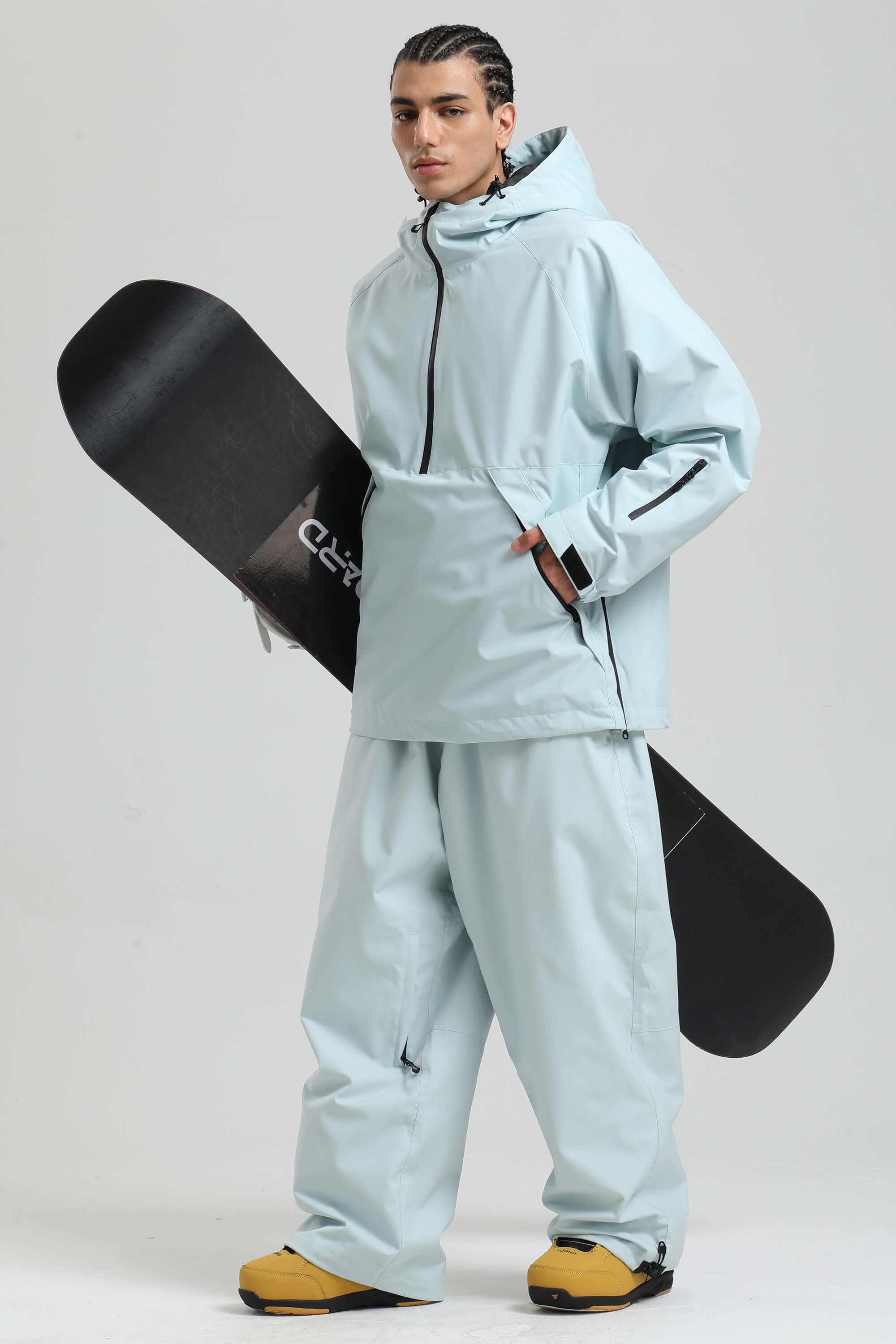 Men's Ice Blue Minimalist Half-Zip Waterproof Insulated Snow Anorak