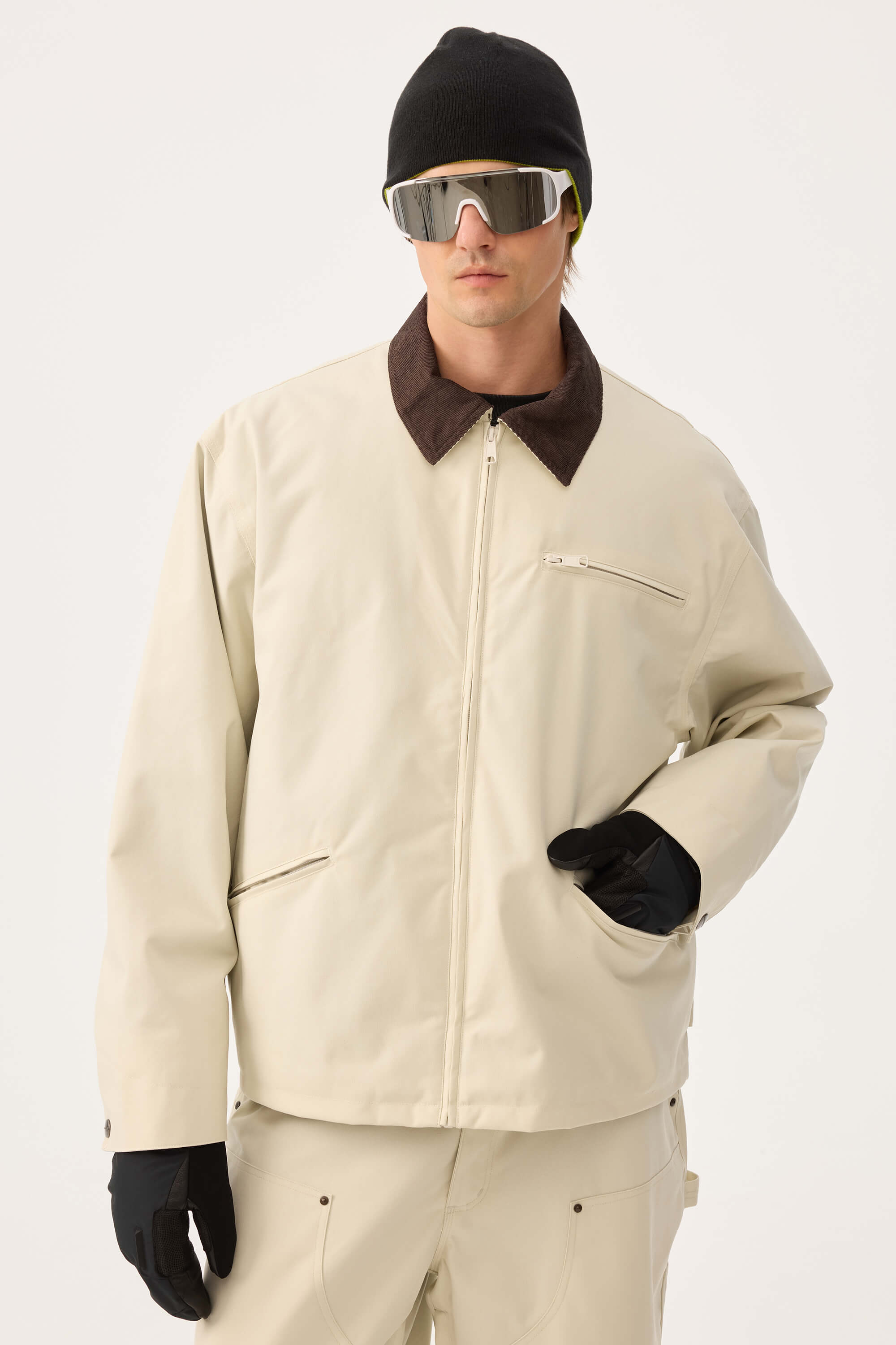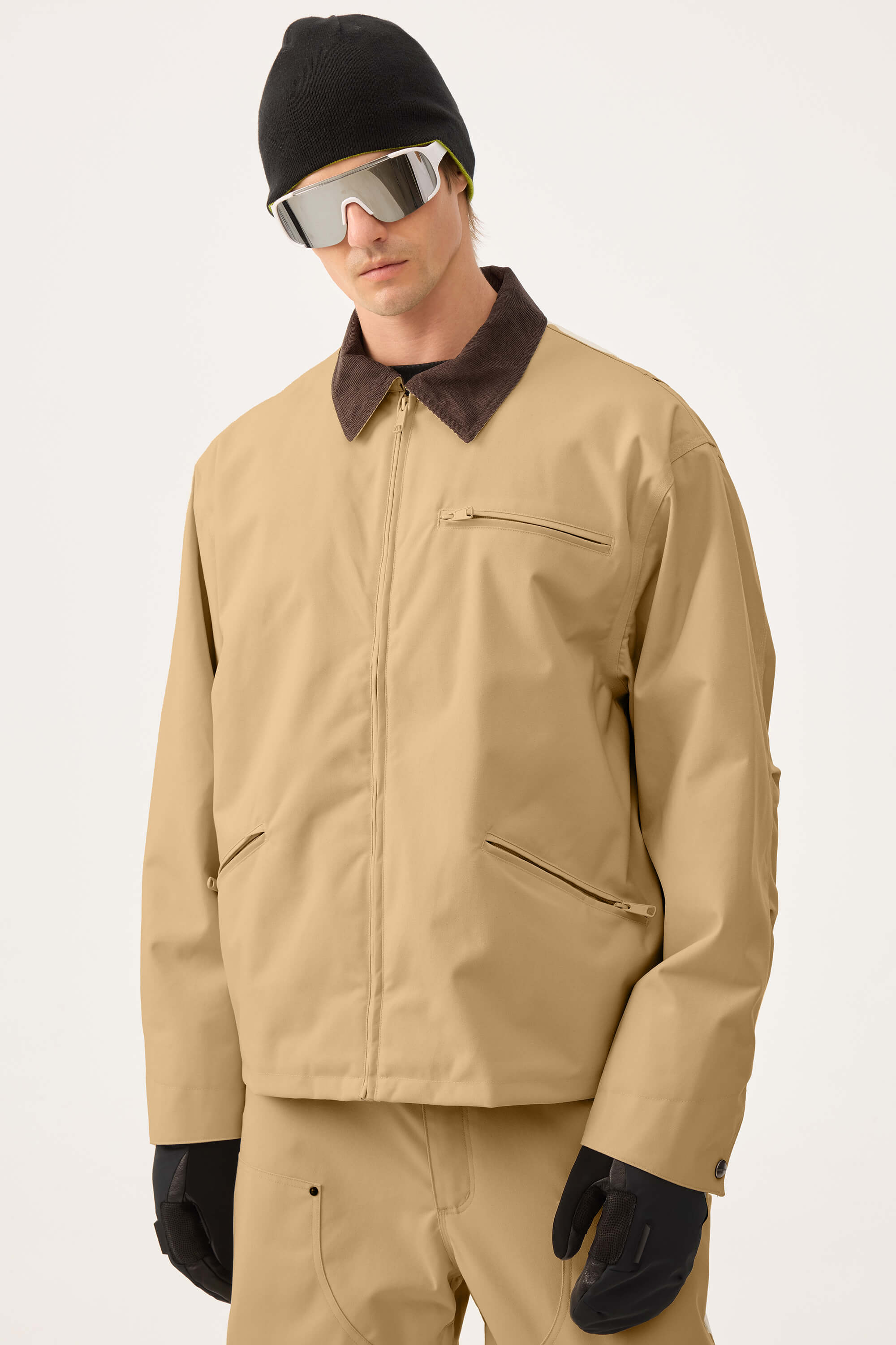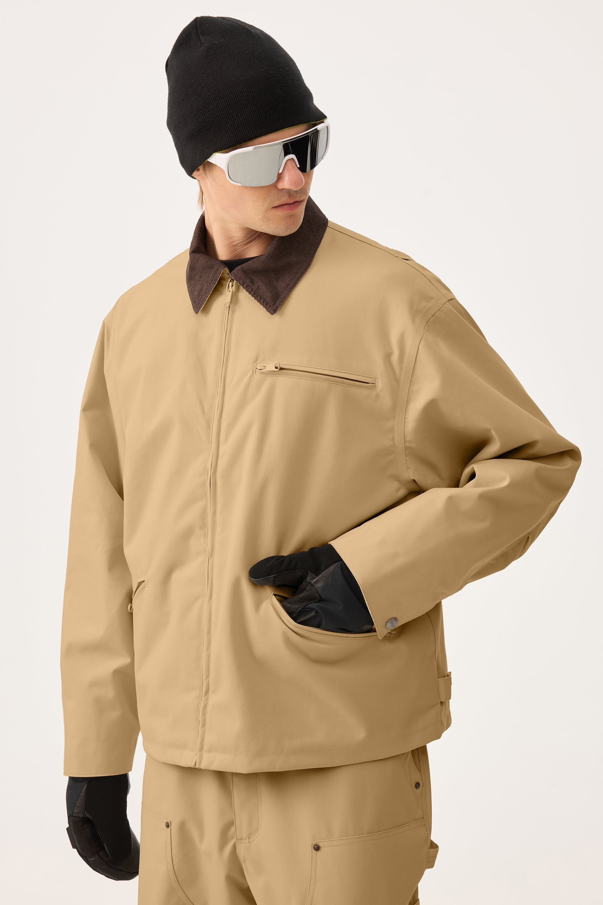 Men's Khaki Boxy Modern Barn Corduroy-Collar Snow Jacket