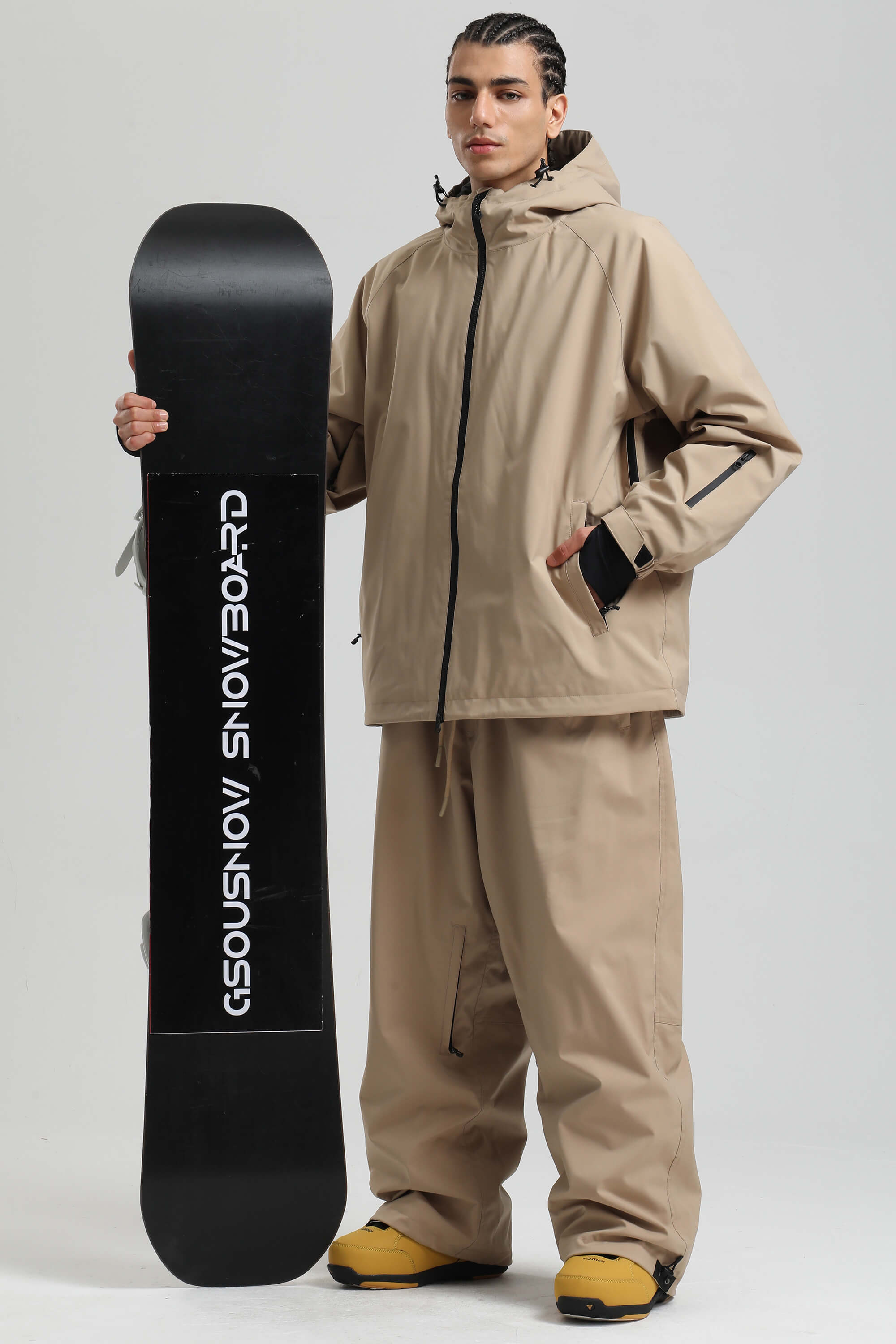 Men's Khaki Dual-Vent Minimalist Waterproof Insulated Snow Jacket