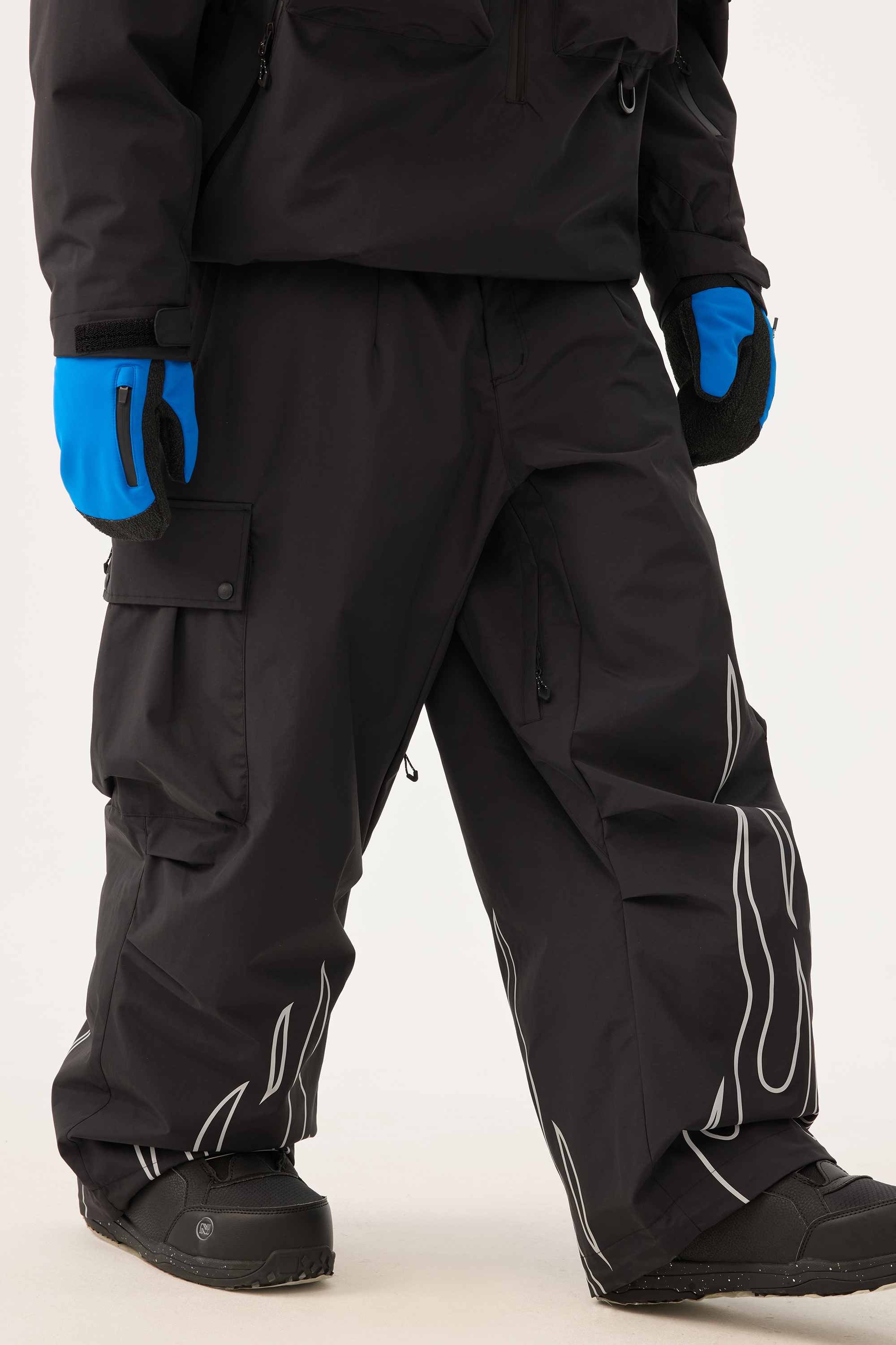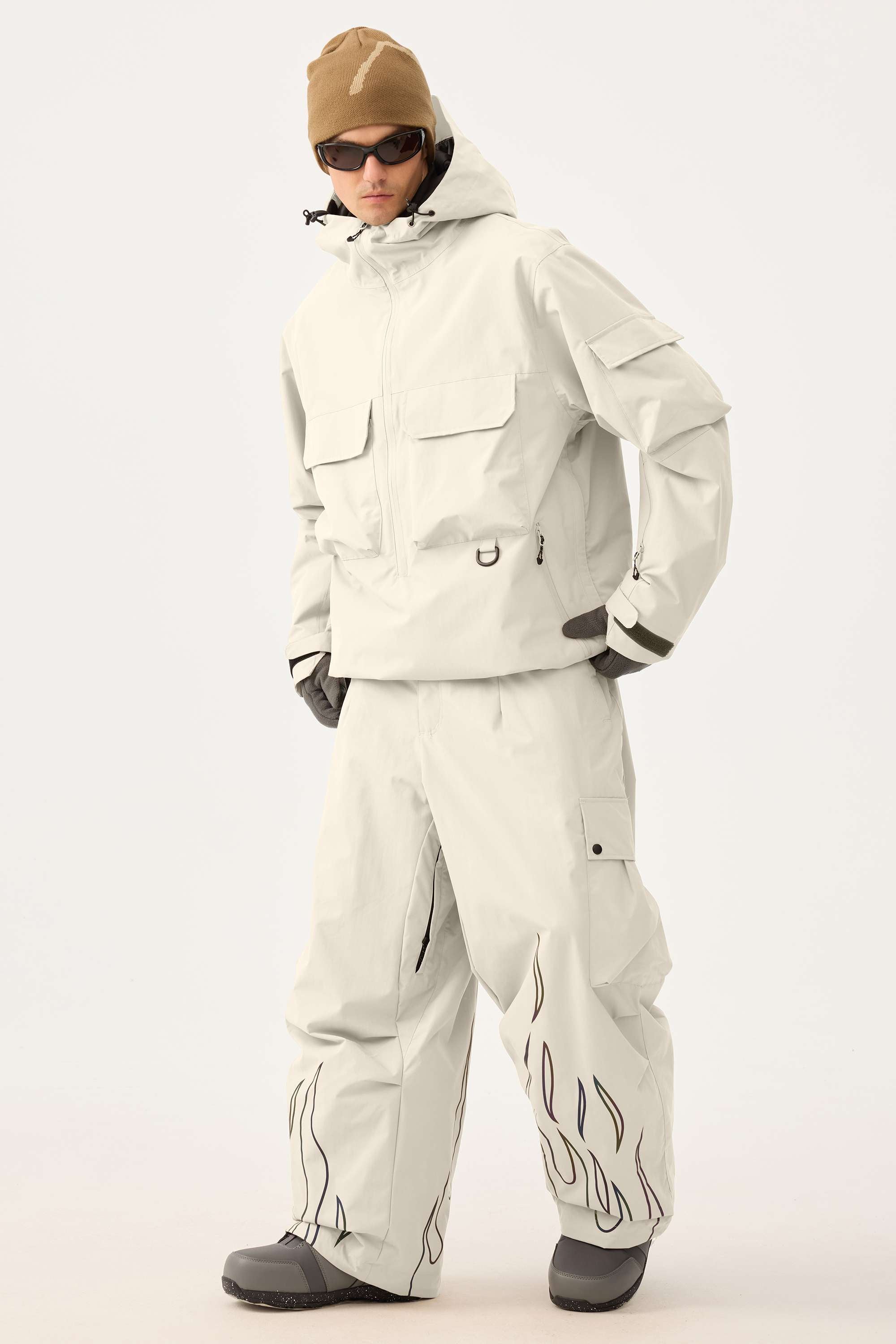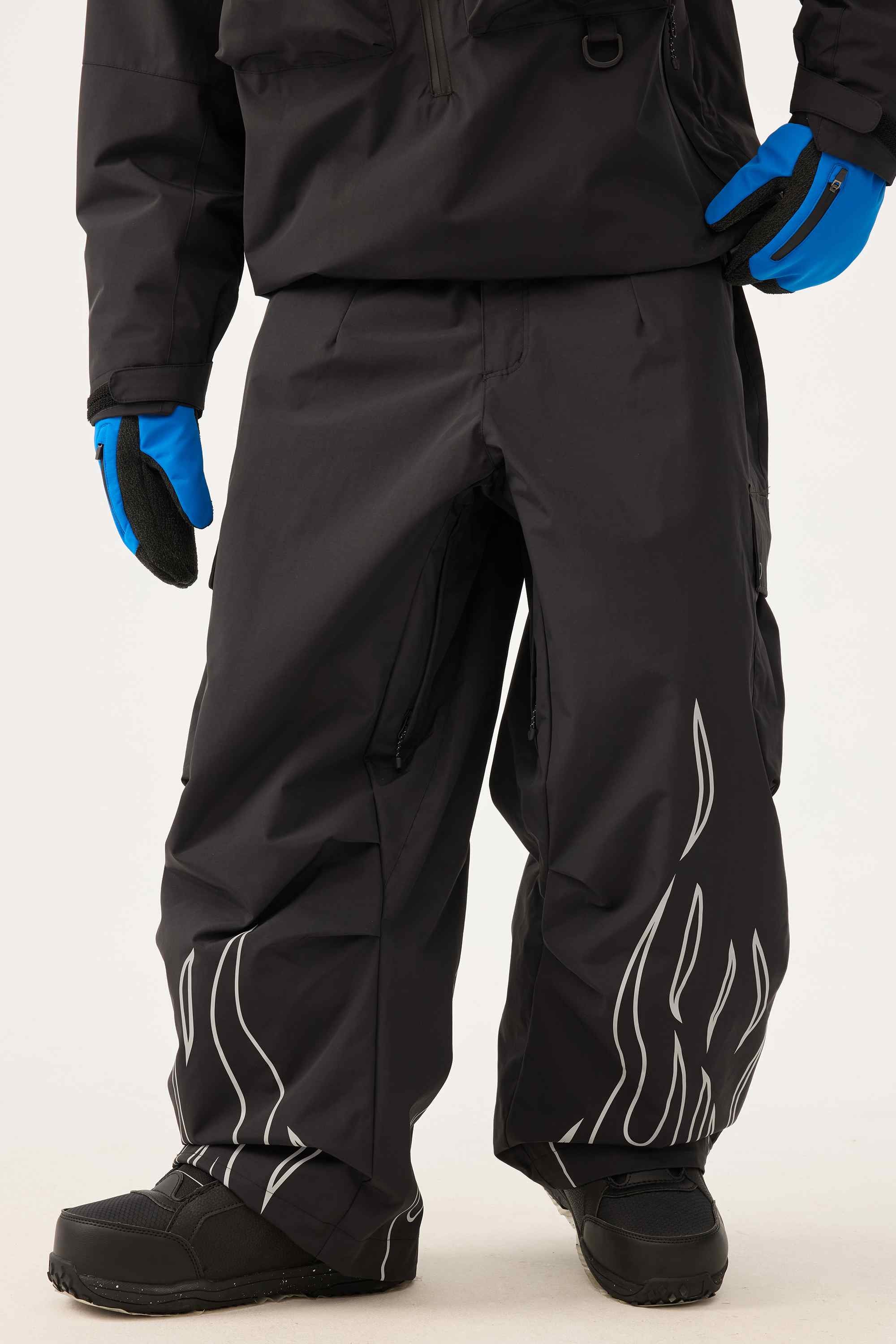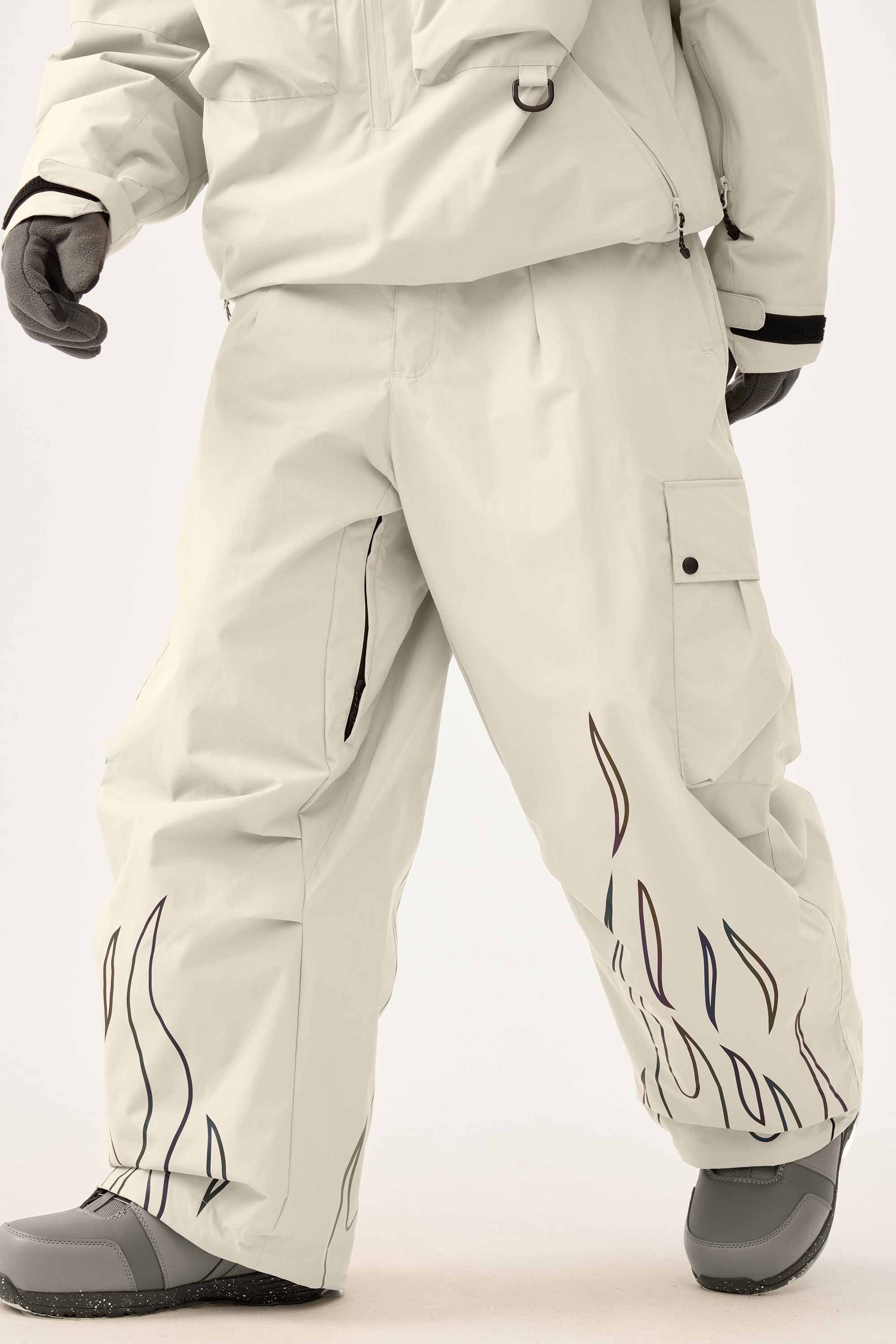 Men's Khaki Reflective Flame Baggy Utility Snow Pants