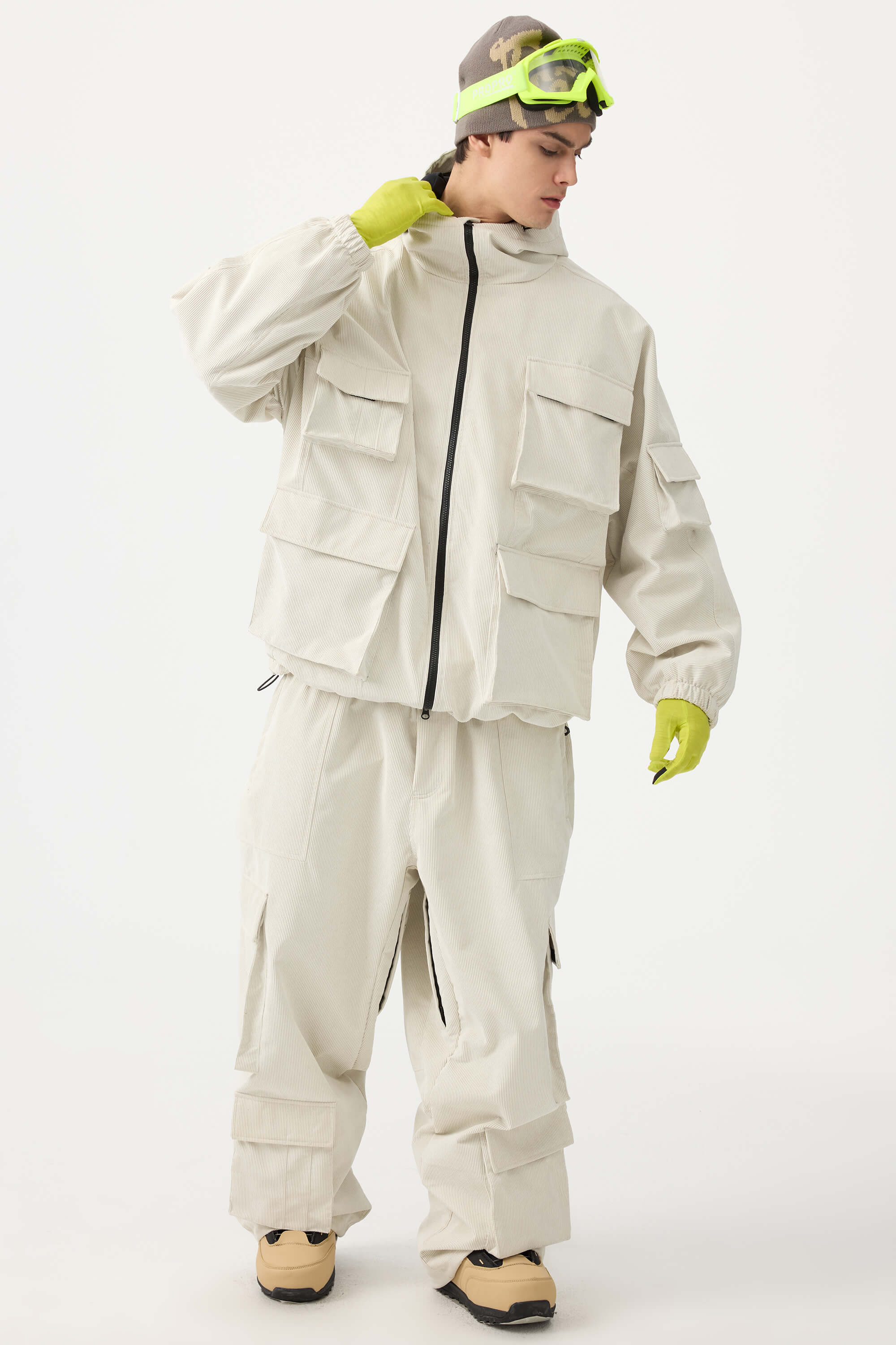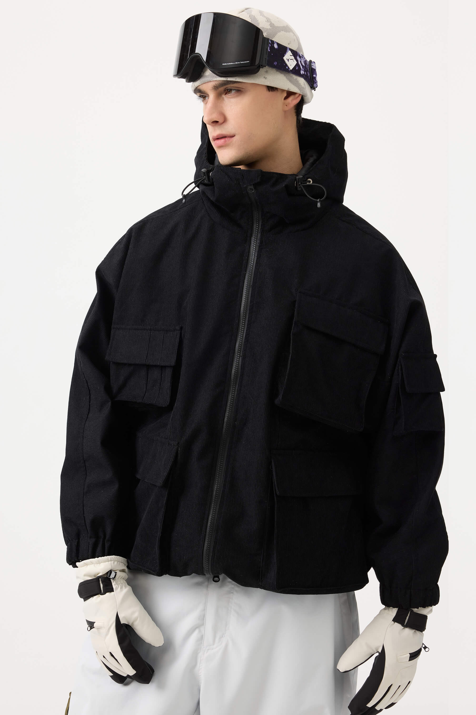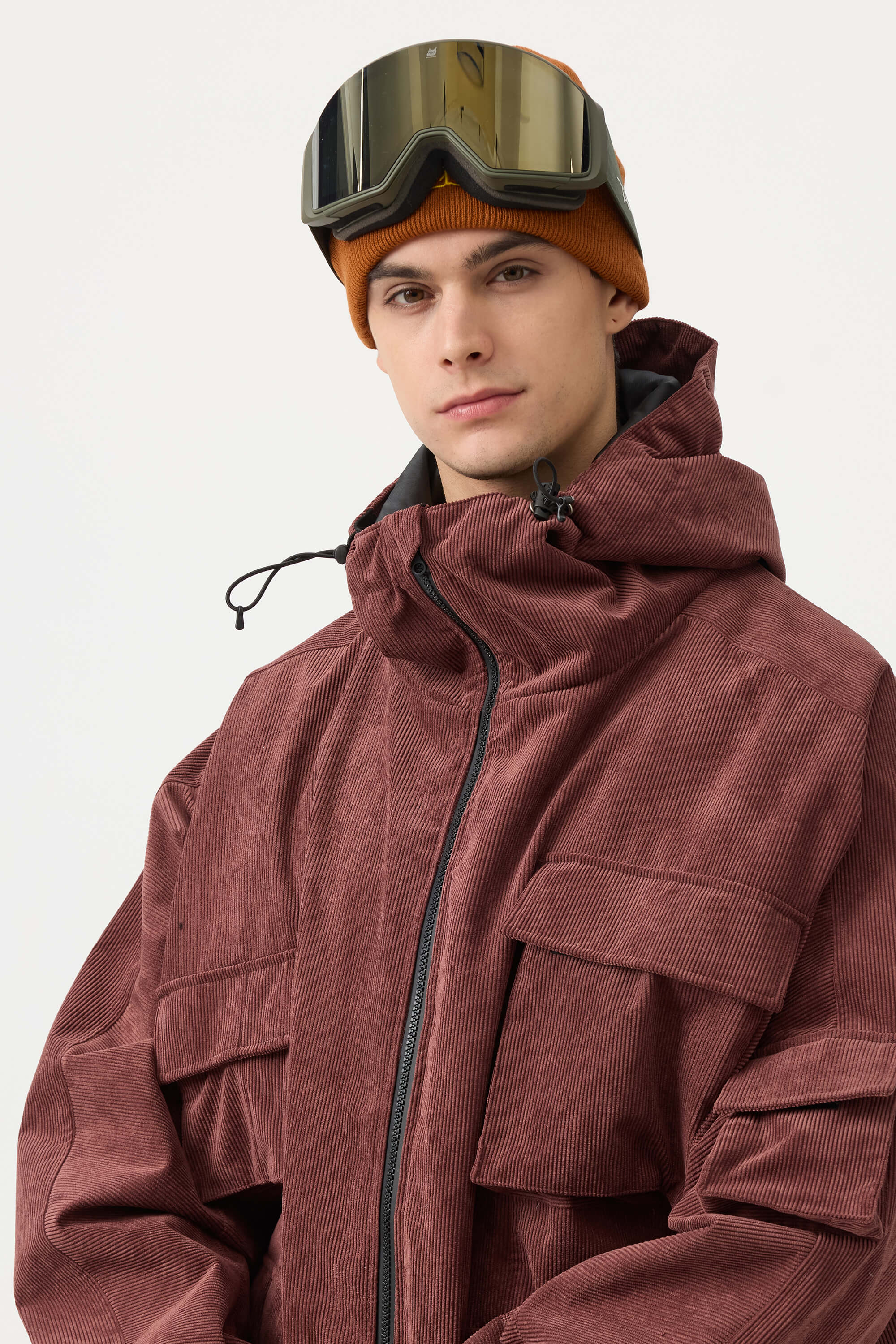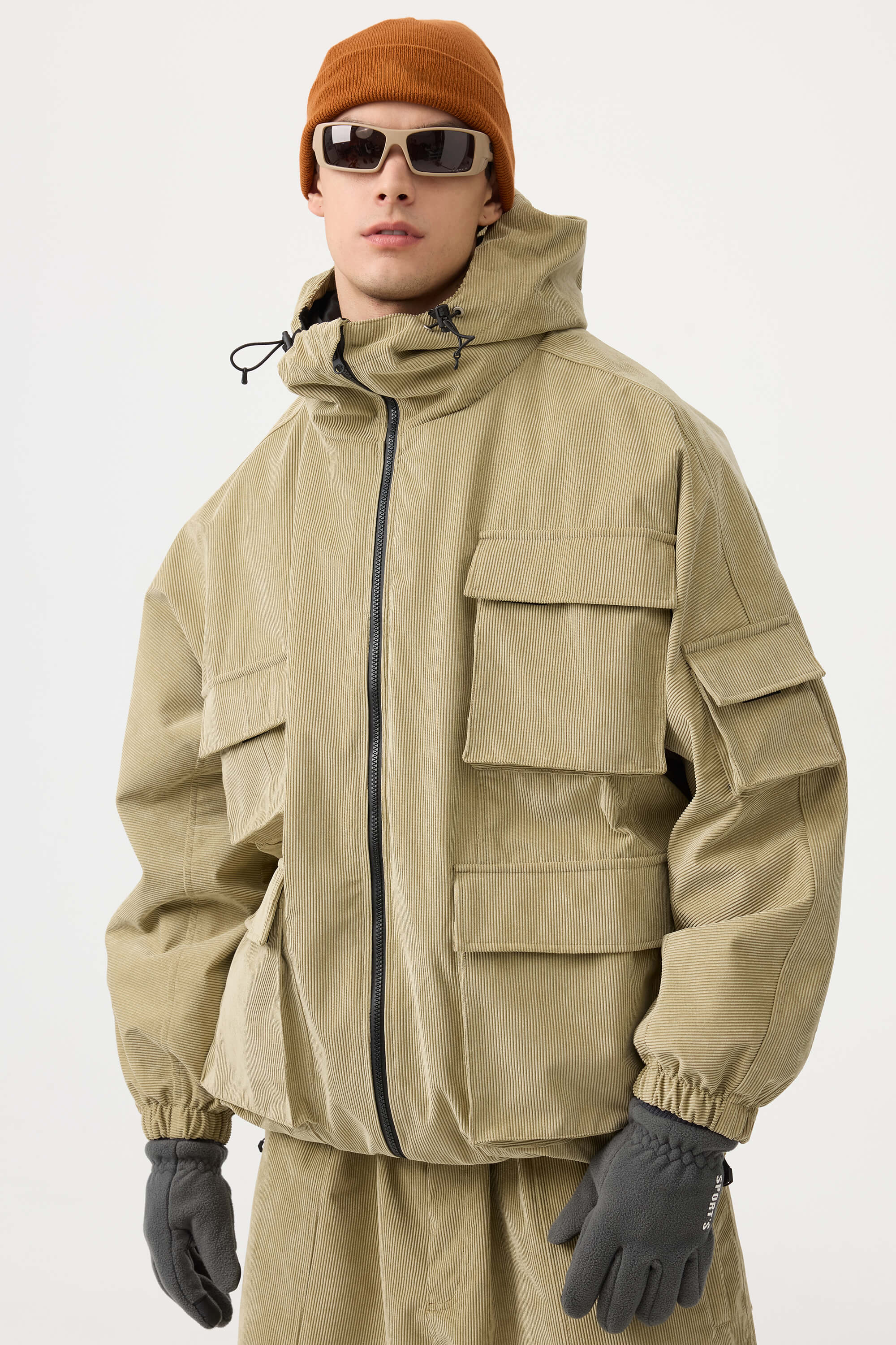 Men's Khaki Waterproof Corduroy Batwing Sleeve Large Pocket Snow Jacket