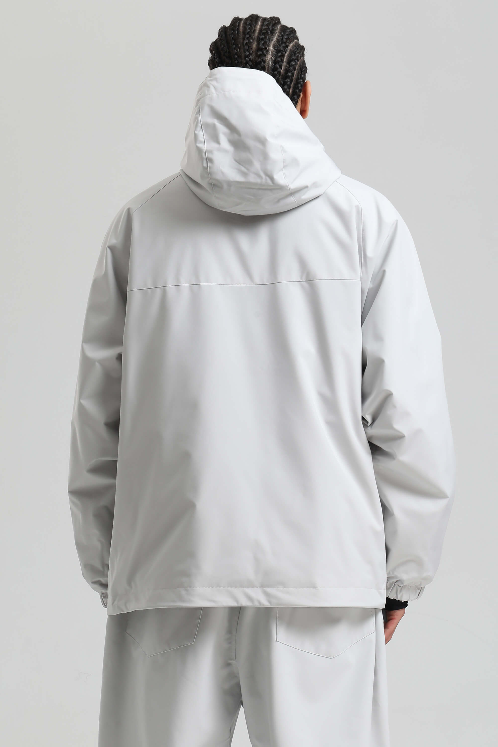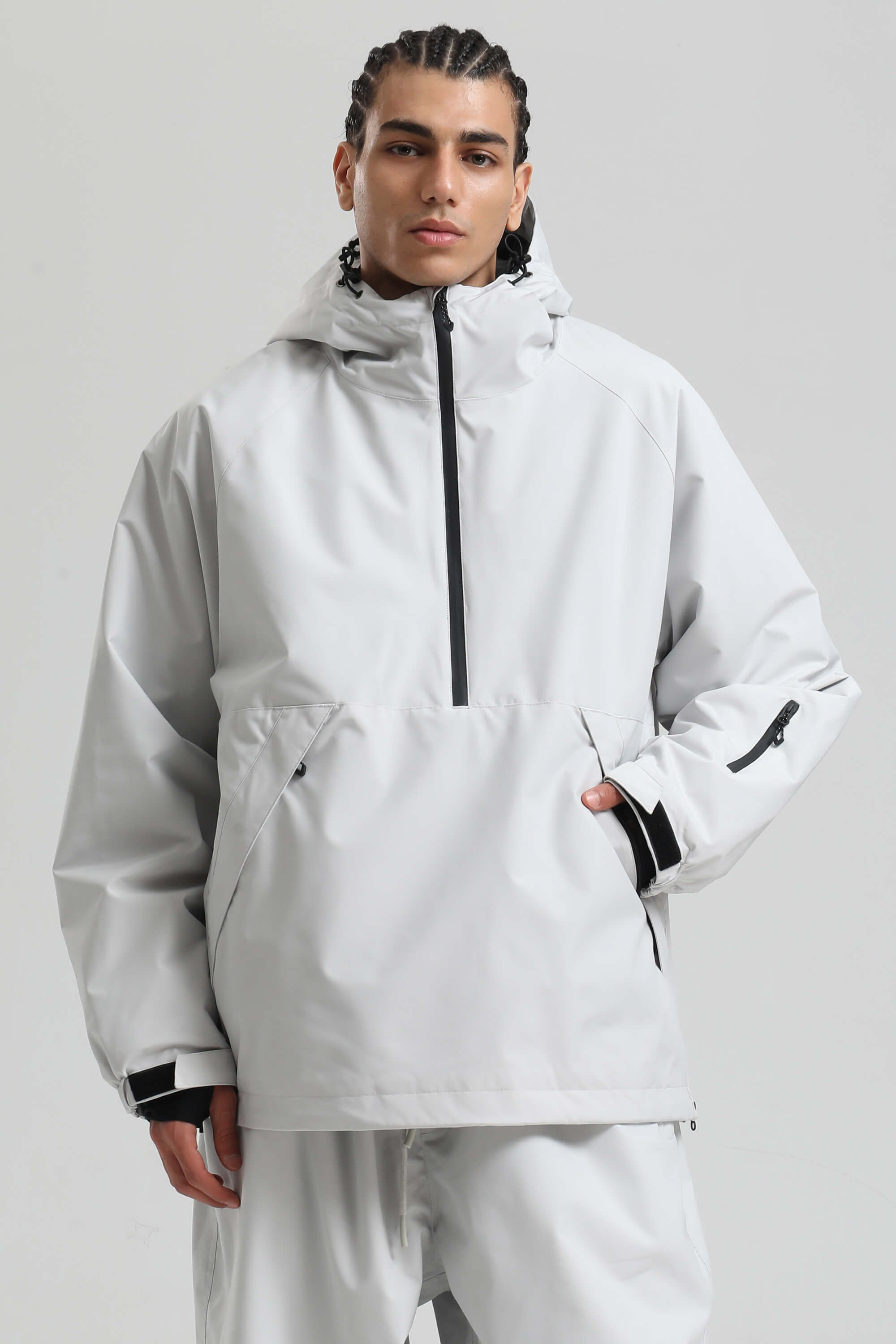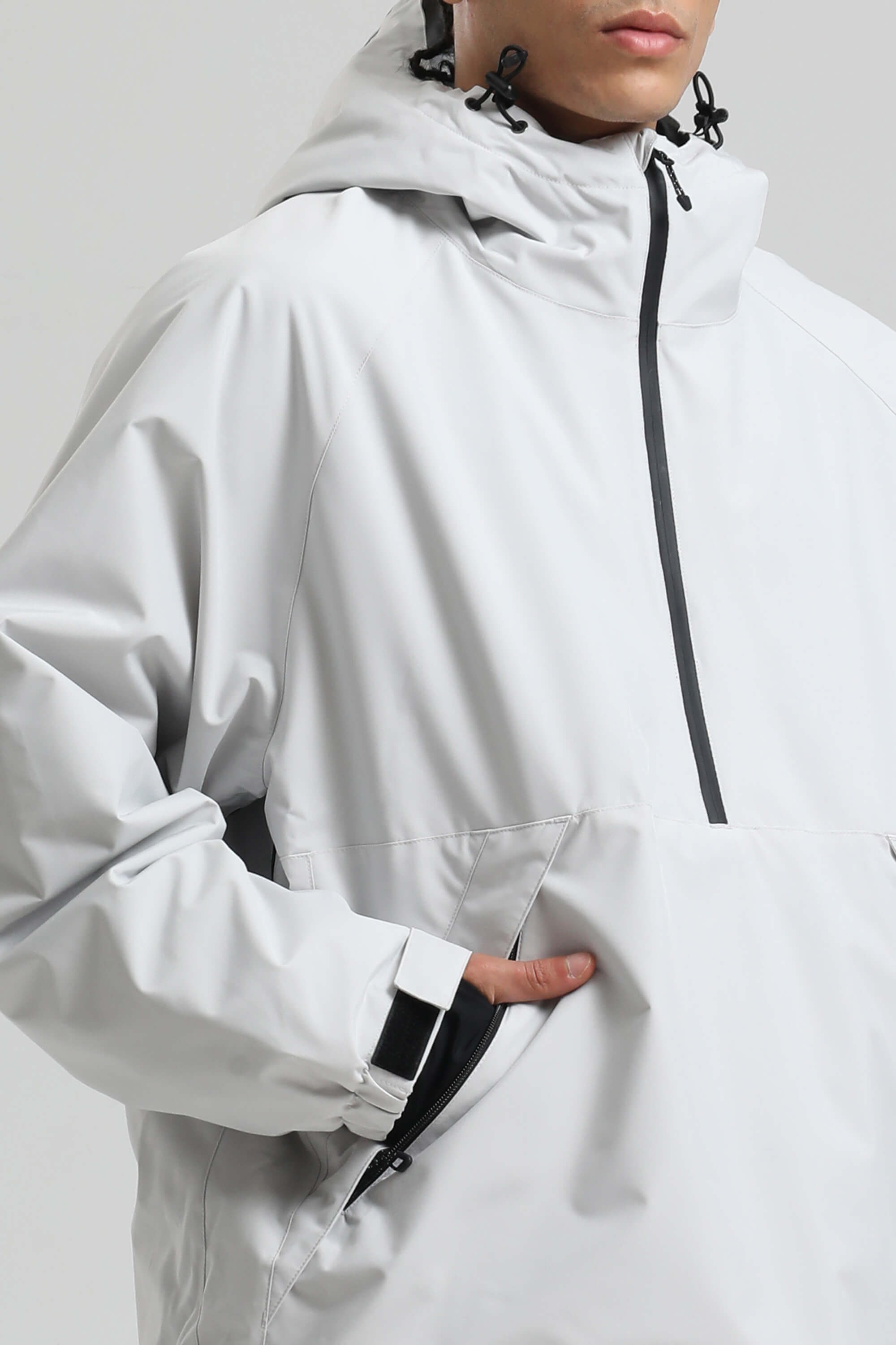 Men's Light Grey Minimalist Half-Zip Waterproof Insulated Snow Anorak