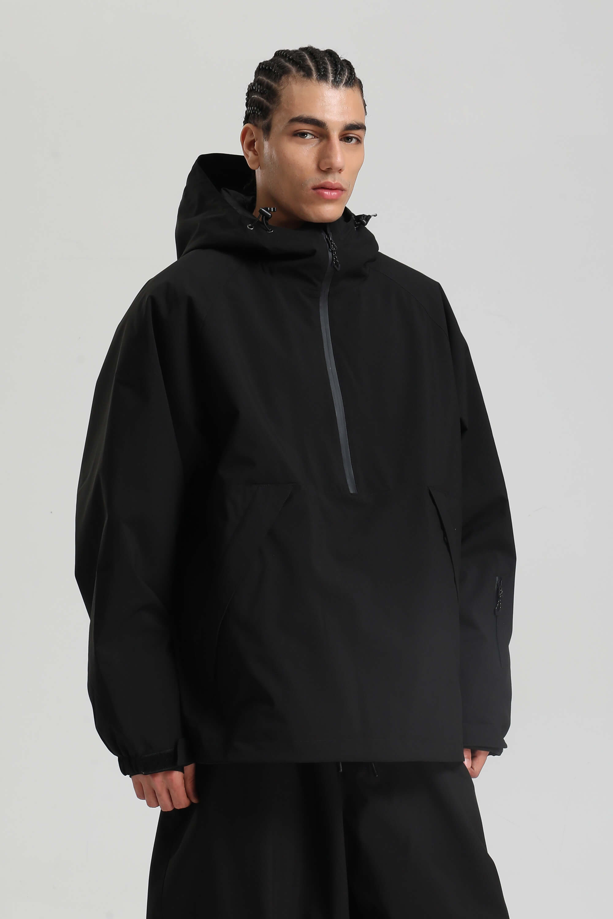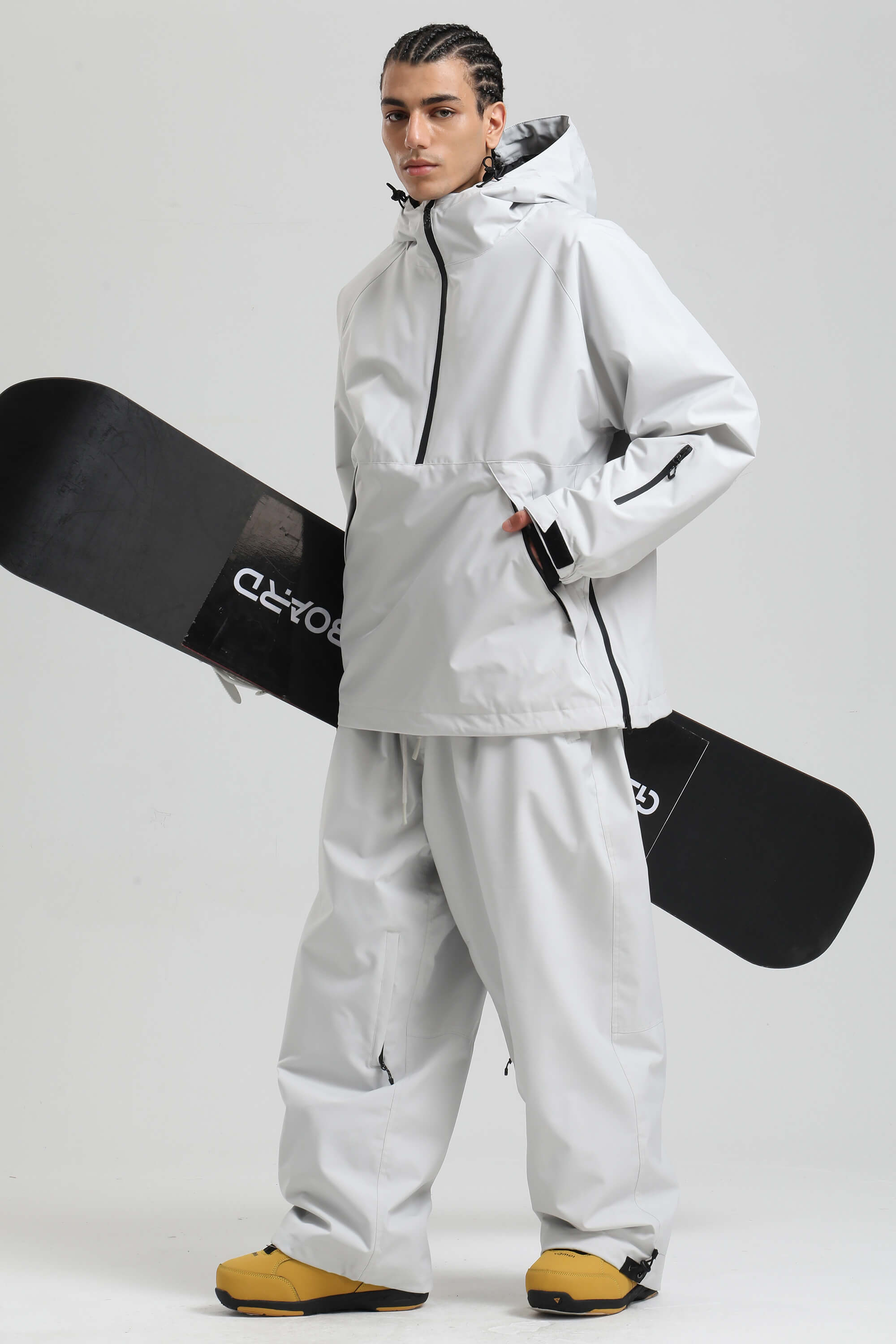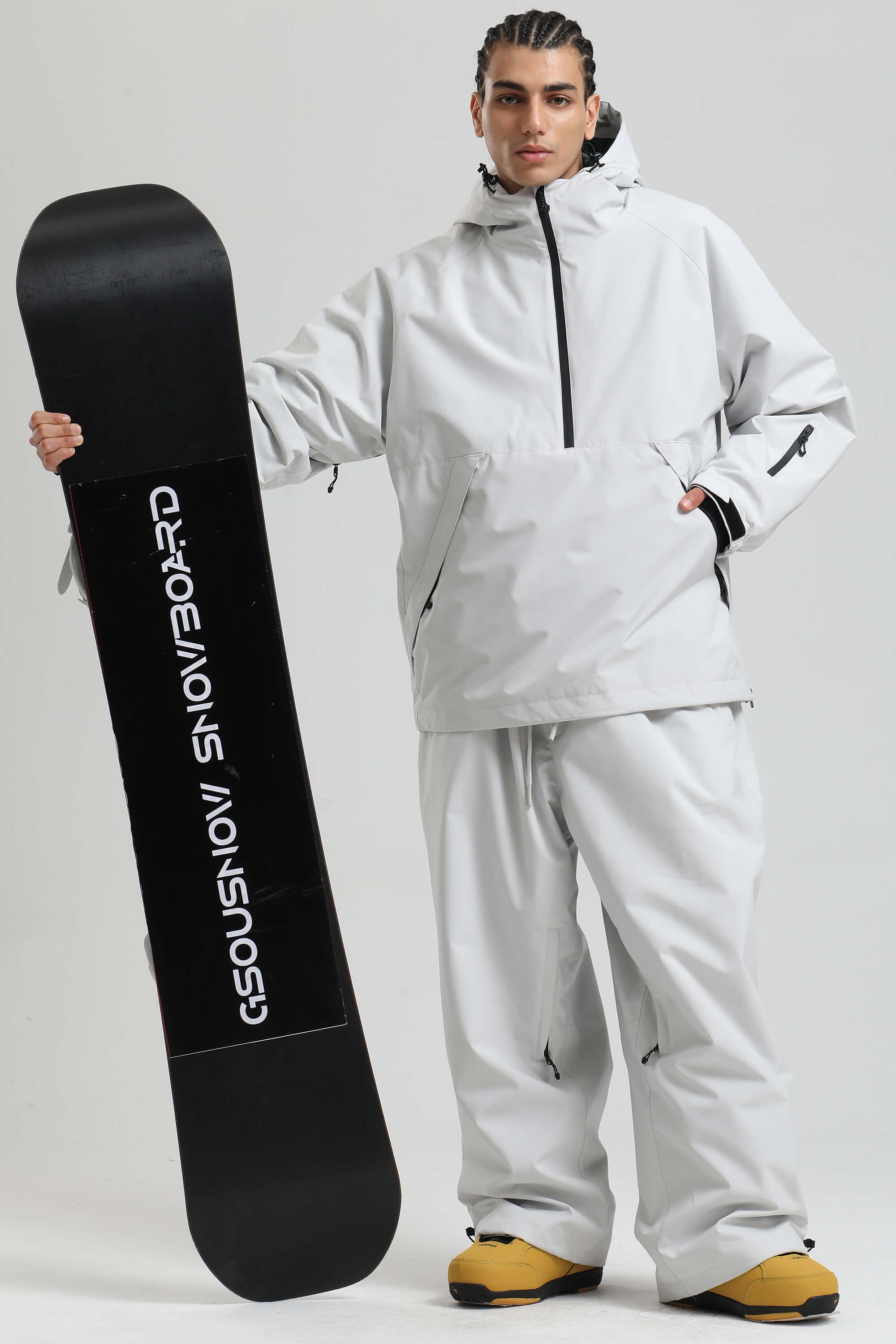Men's Light Grey Minimalist Half-Zip Waterproof Insulated Snow Anorak