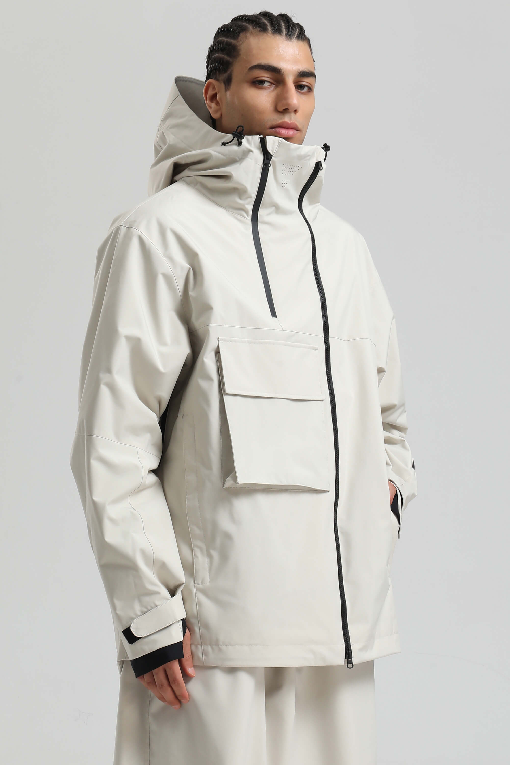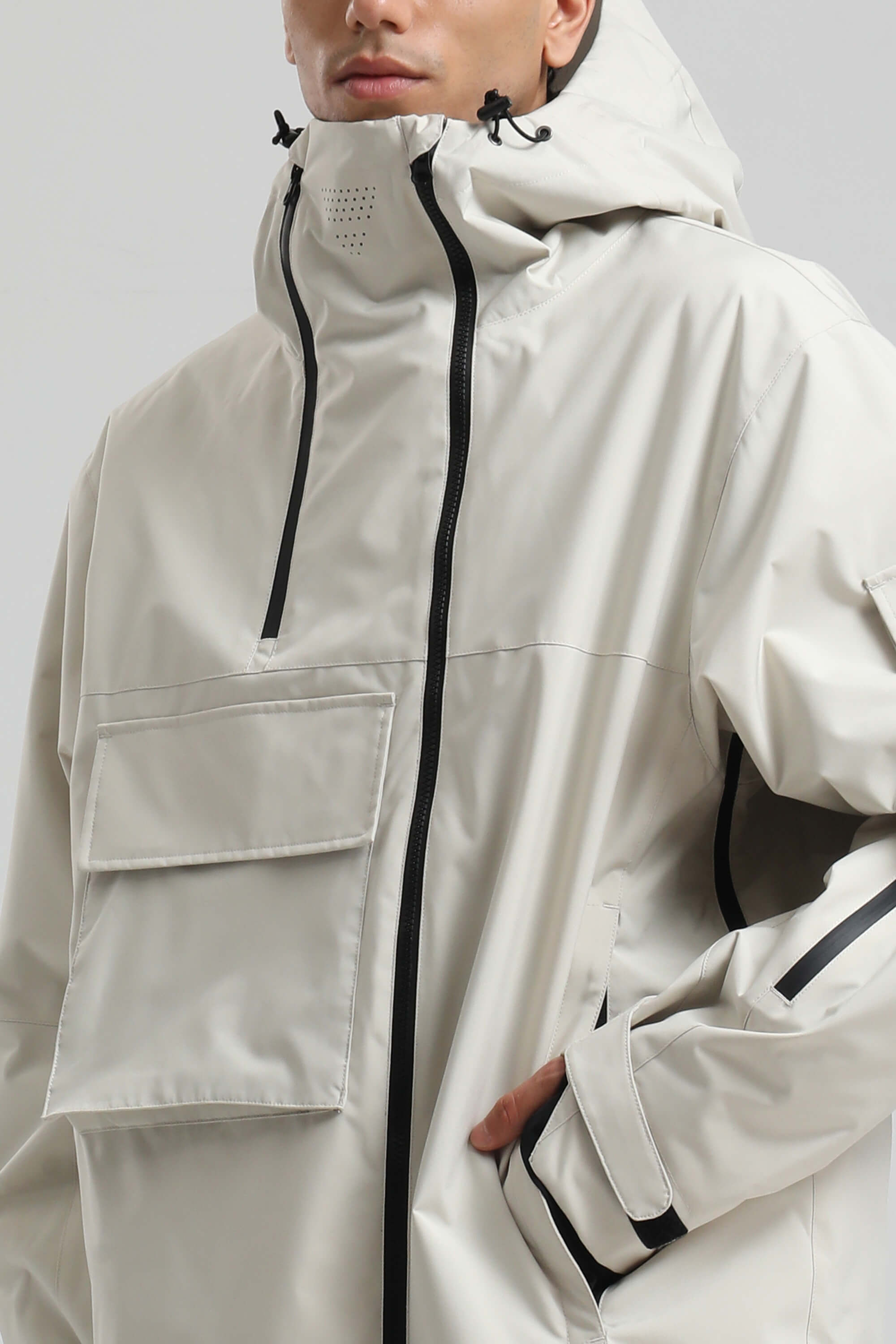 Men's Off White Asym-Zip Utility Pocket Waterproof Snow Jacket