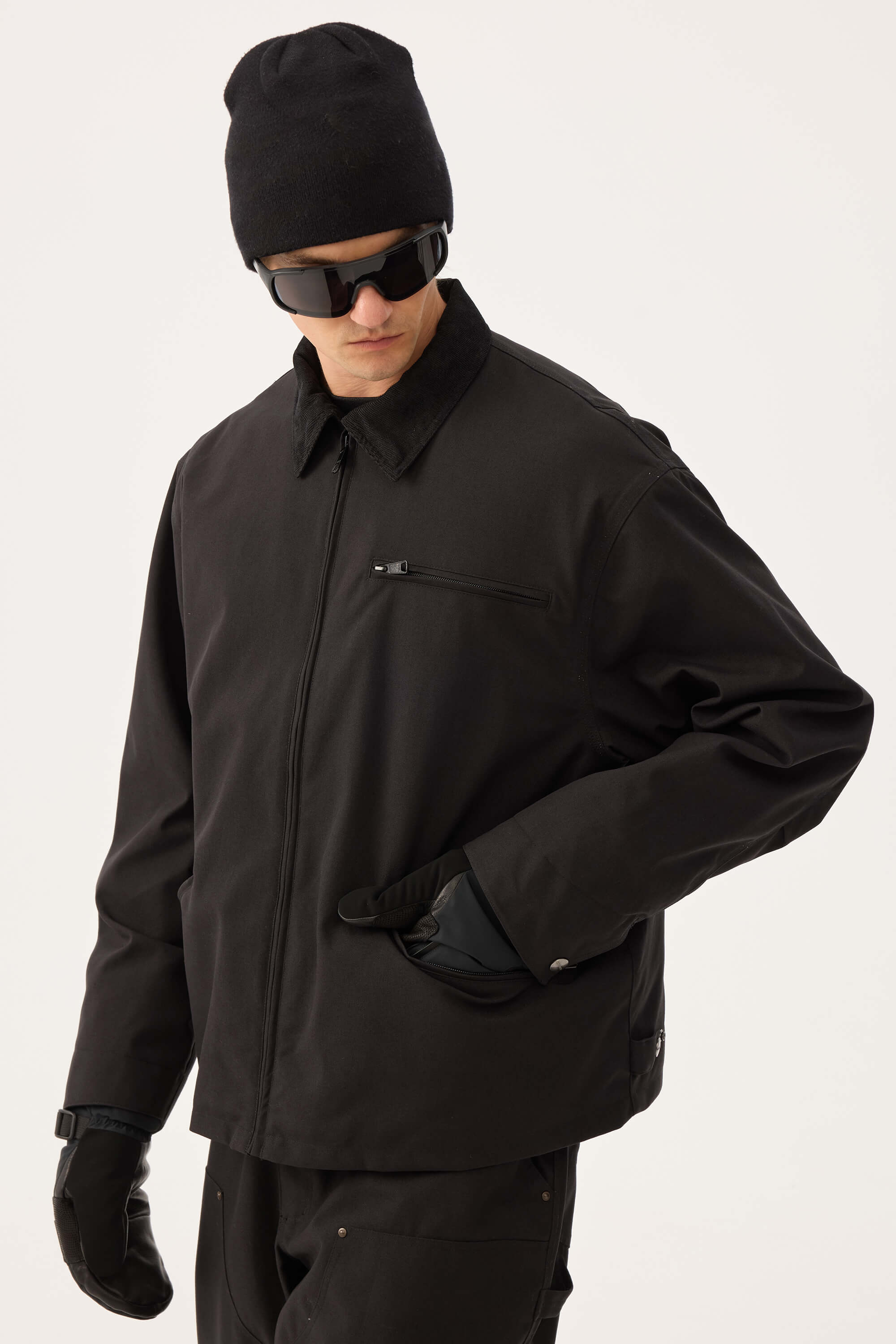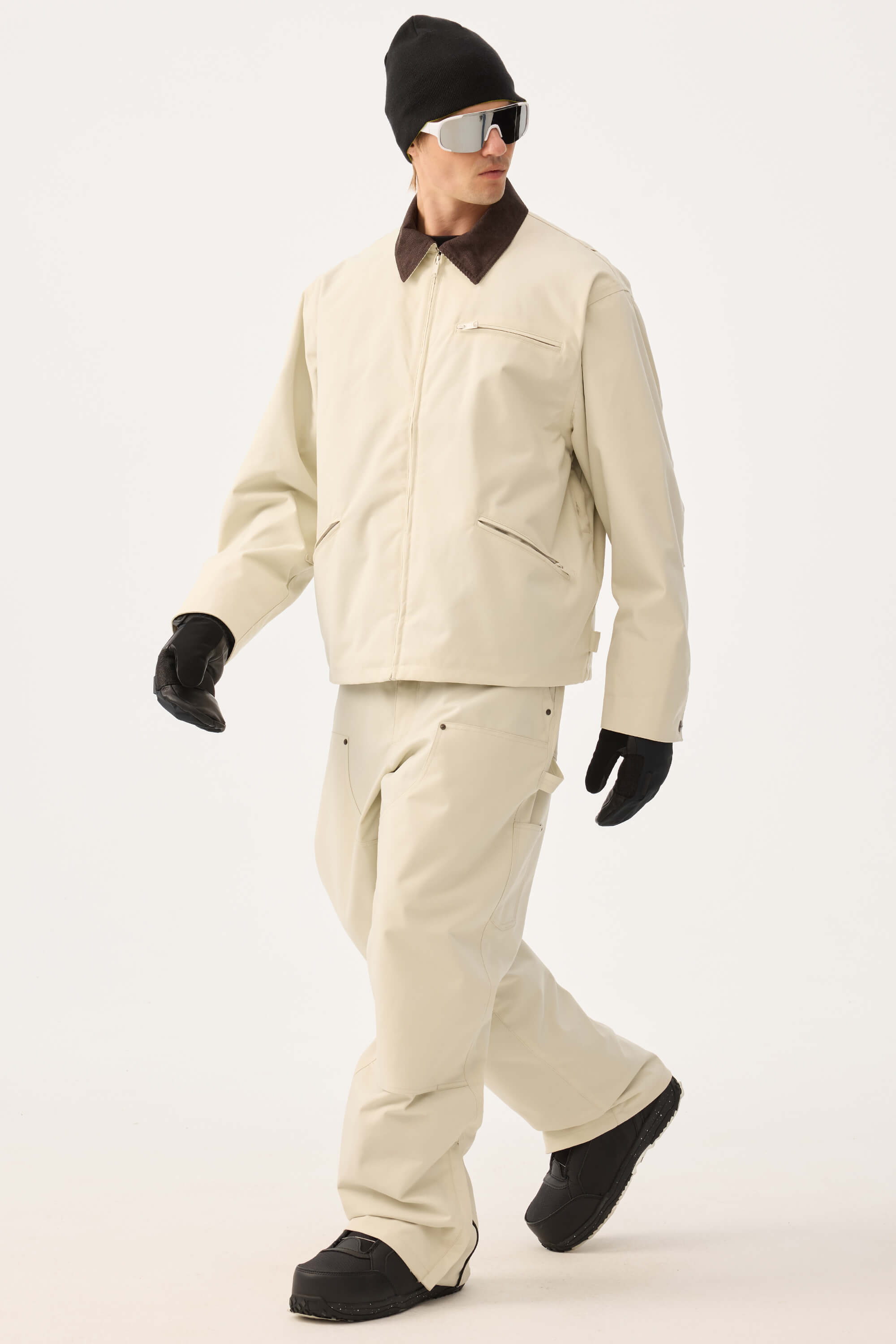 Men's Off White Boxy Modern Barn Corduroy-Collar Snow Jacket