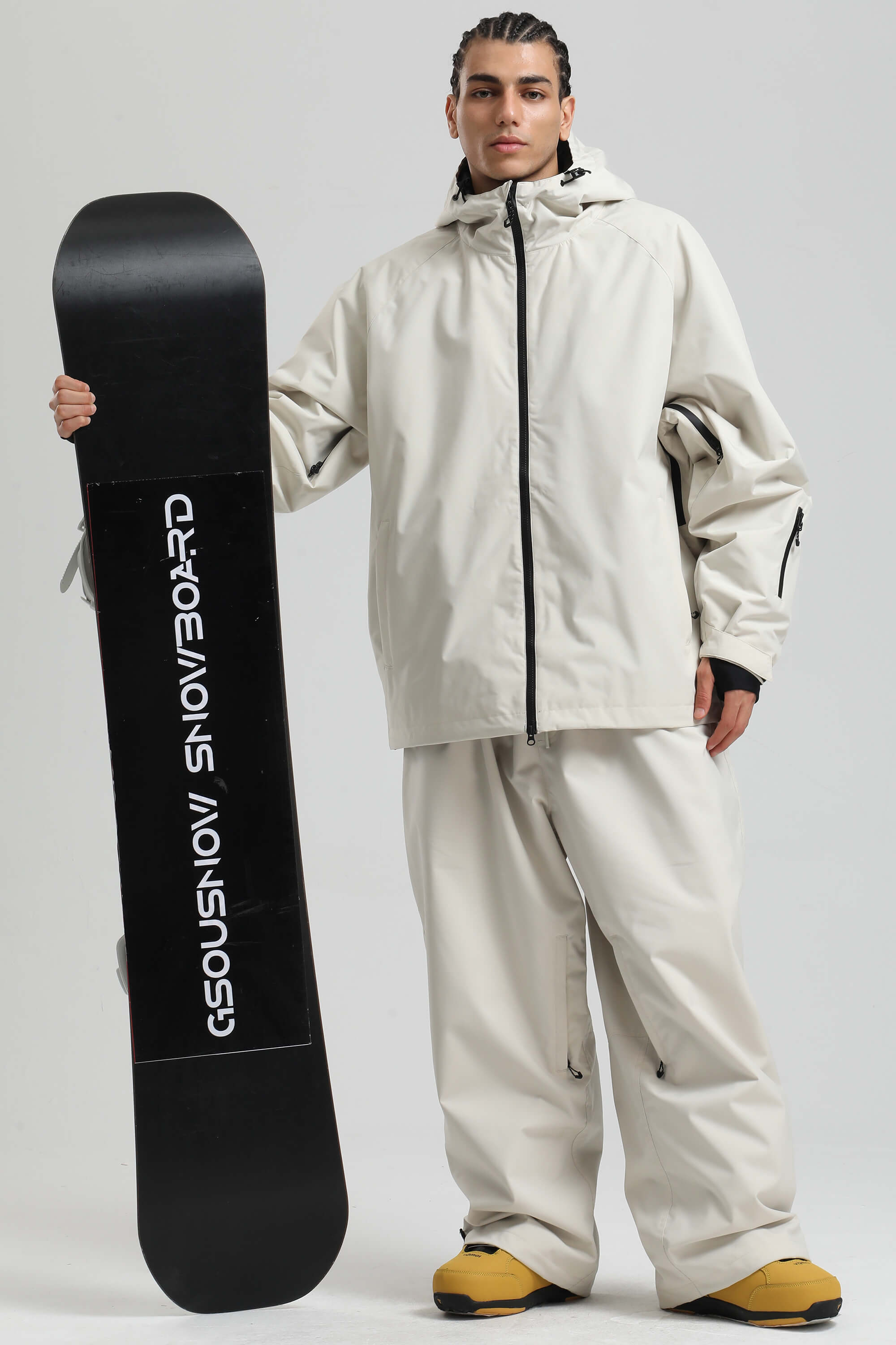 Men's Off White Dual-Vent Minimalist Waterproof Insulated Snow Jacket