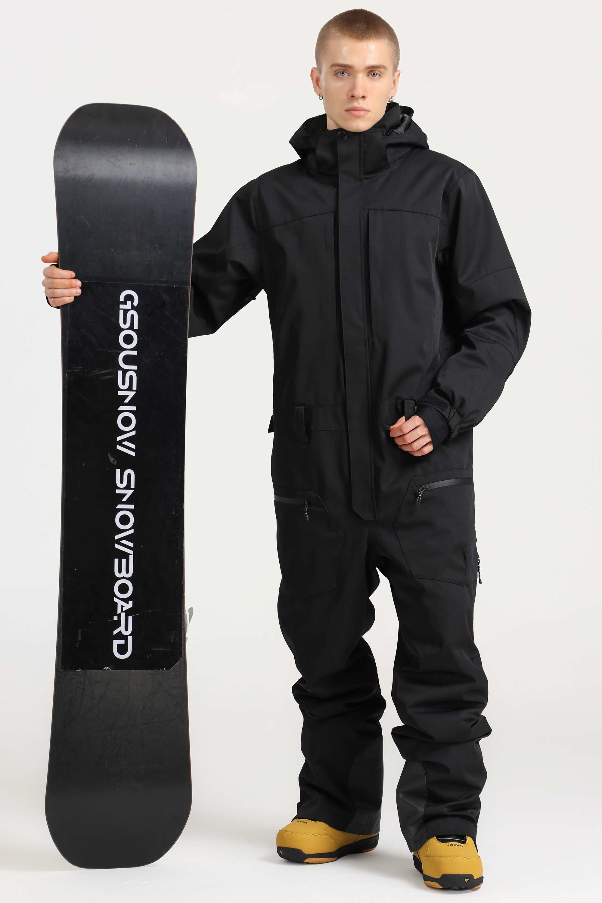 Men's Off White Stylish Waterproof & Windproof Loose-Fit One-Piece Ski Suit with Detachable Hood & Multipockets
