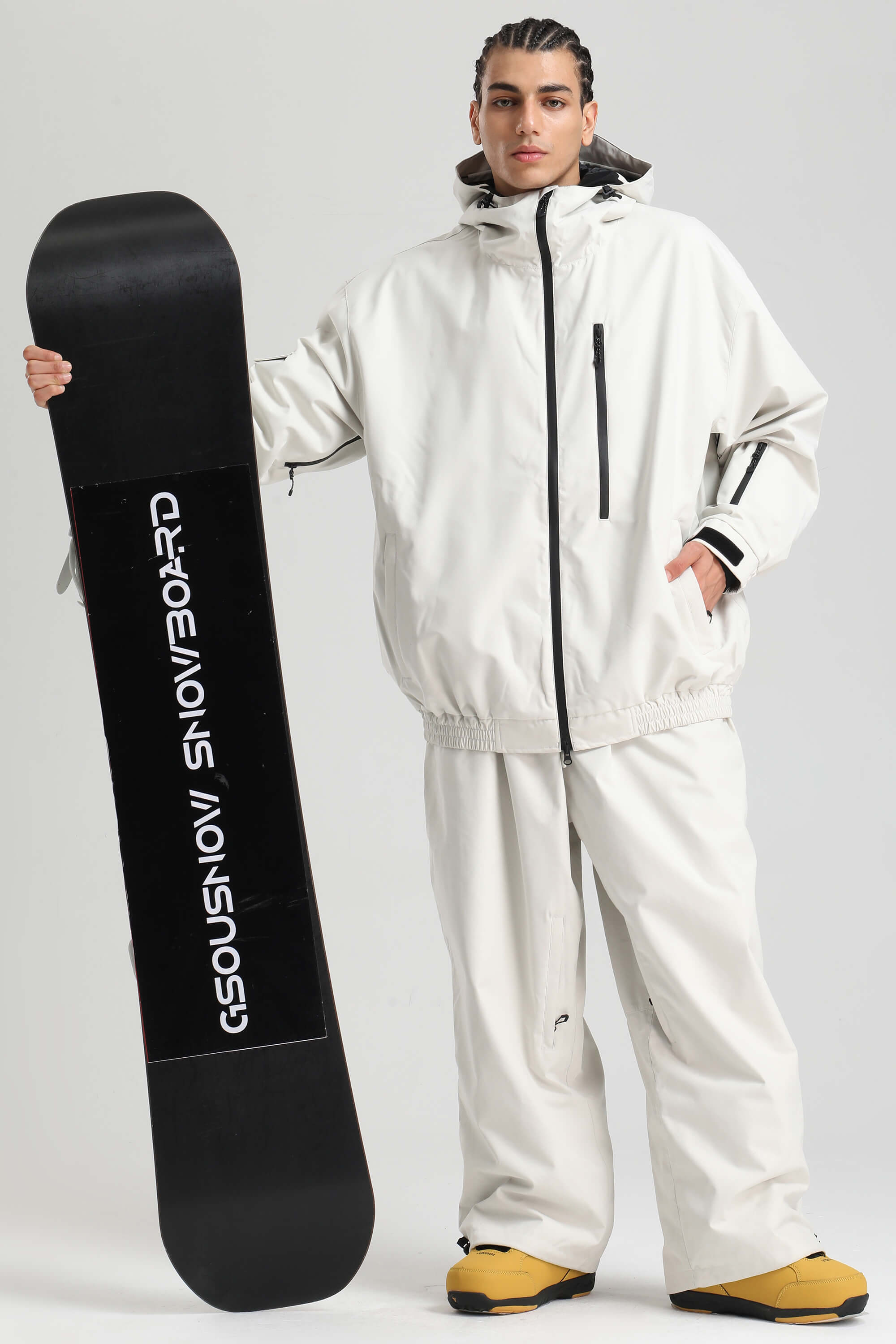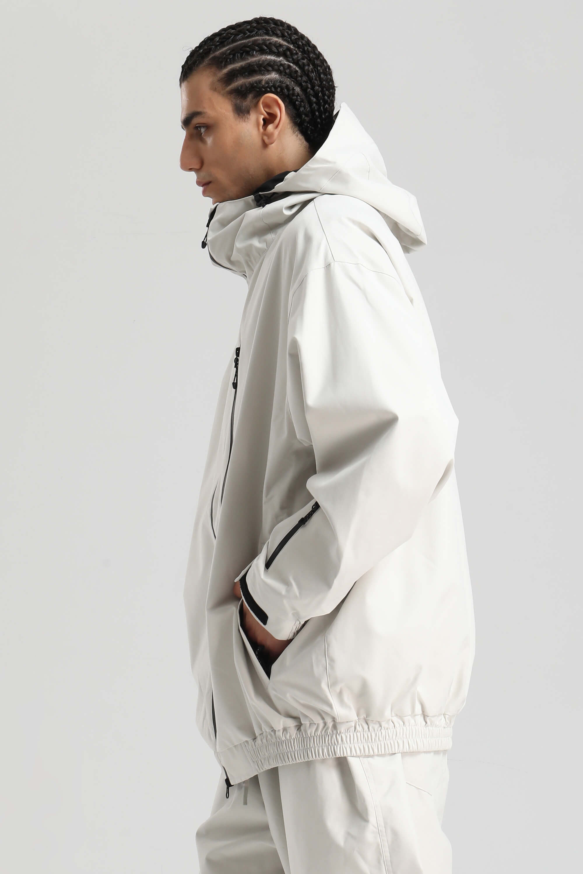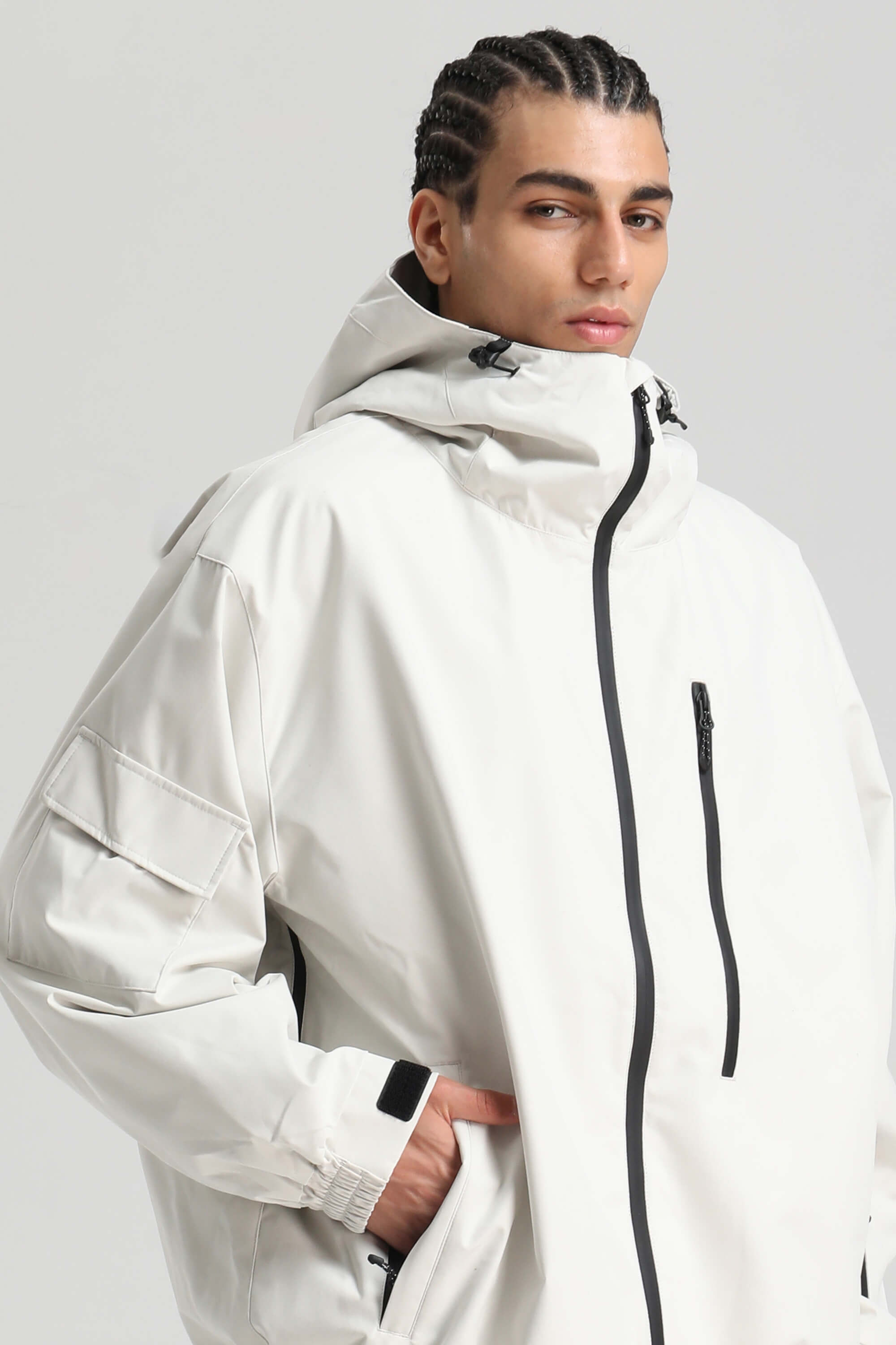 Men's Off-White Washed Effect Minimalist Multi-Pocket Waterproof Snow Jacket