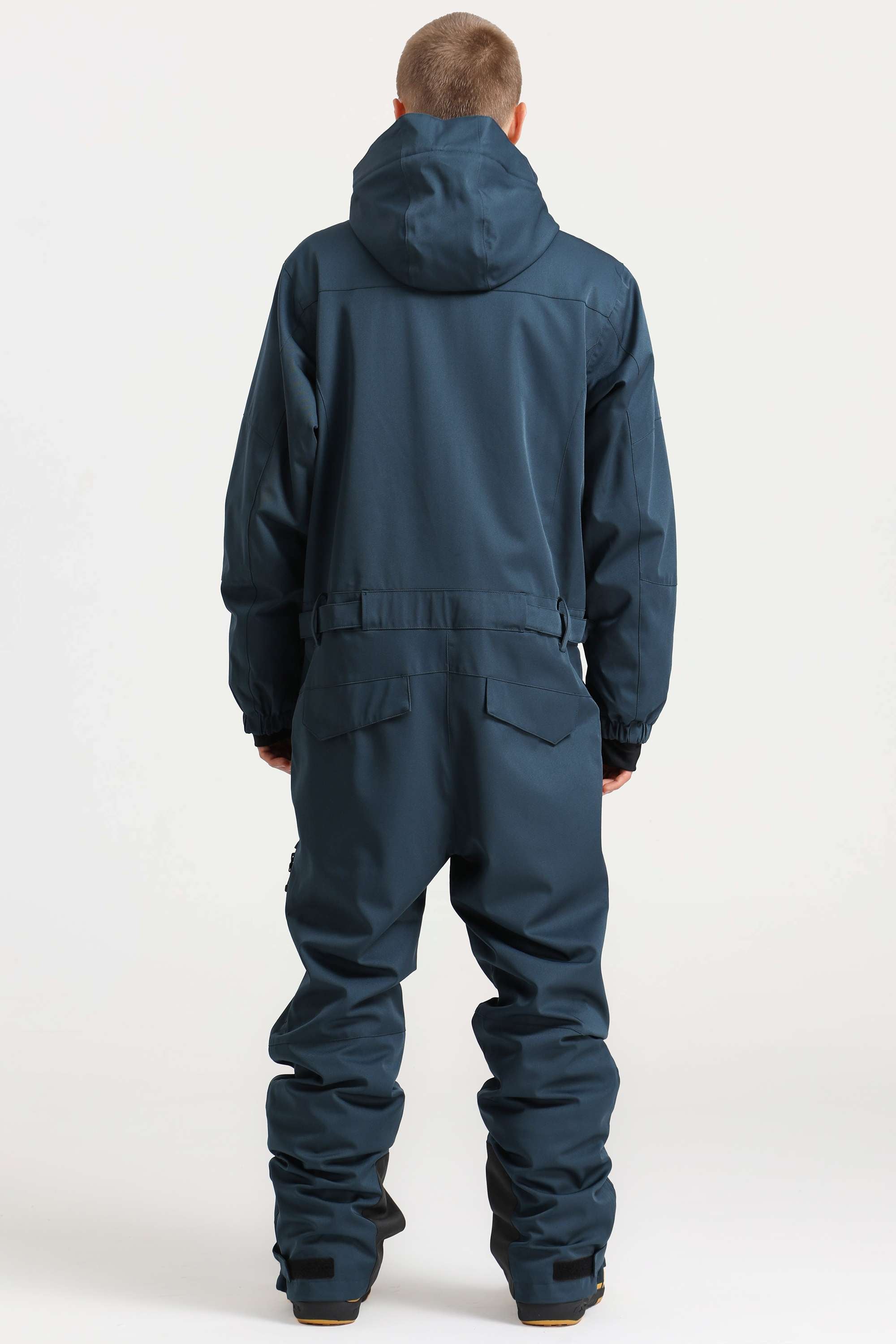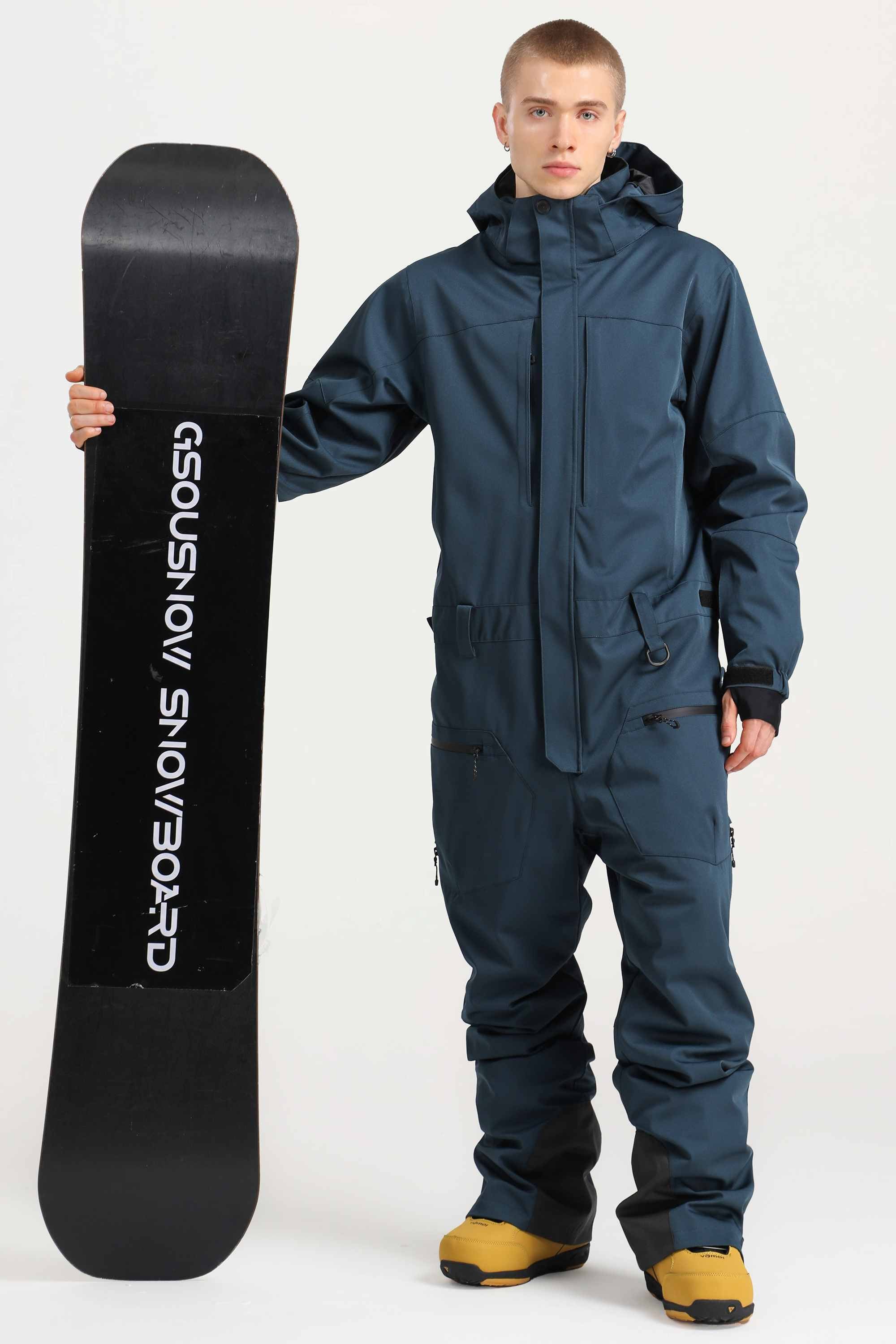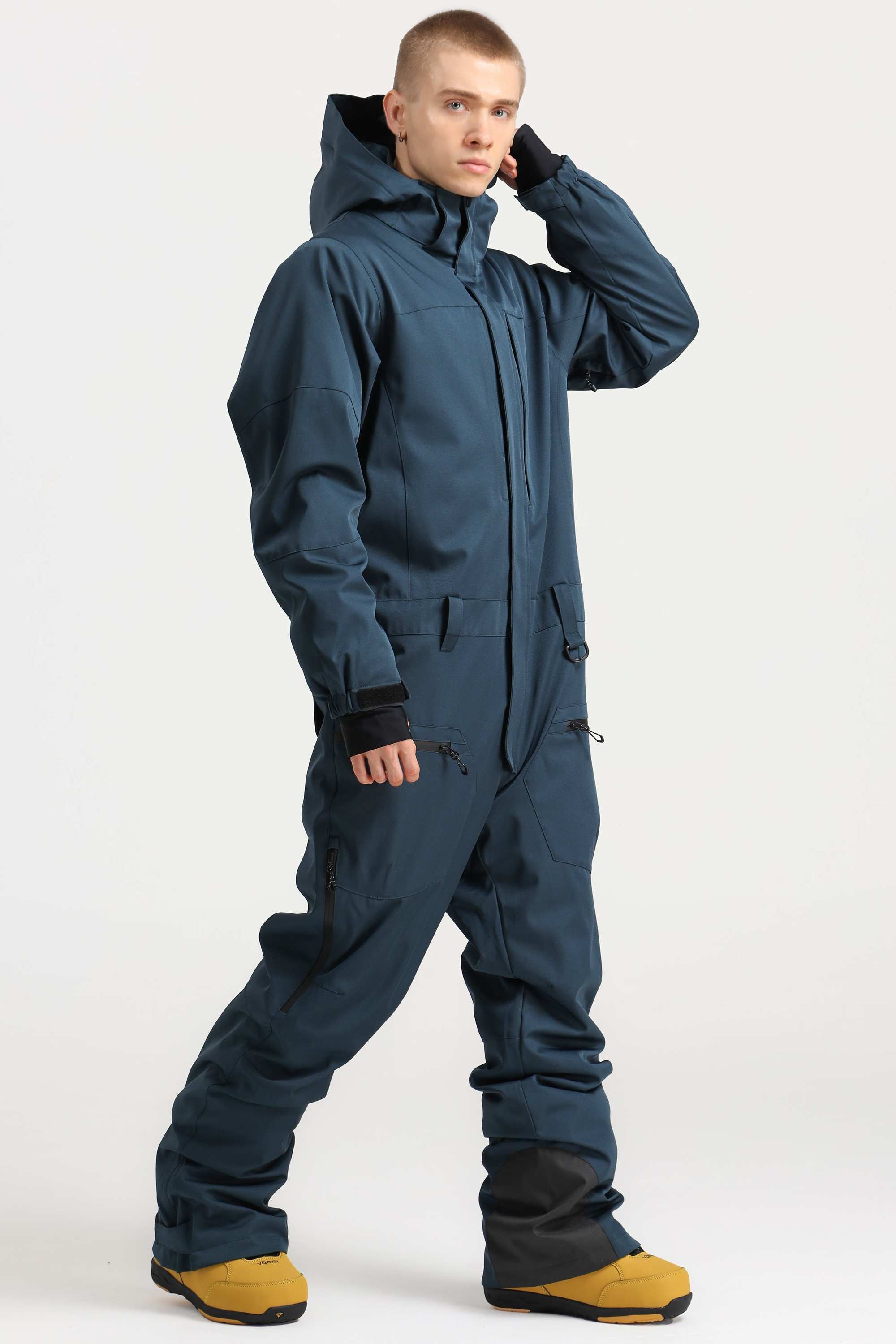 Men's Peacock Blue Stylish Waterproof & Windproof Loose-Fit One-Piece Ski Suit with Detachable Hood & Multipockets