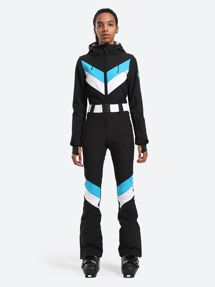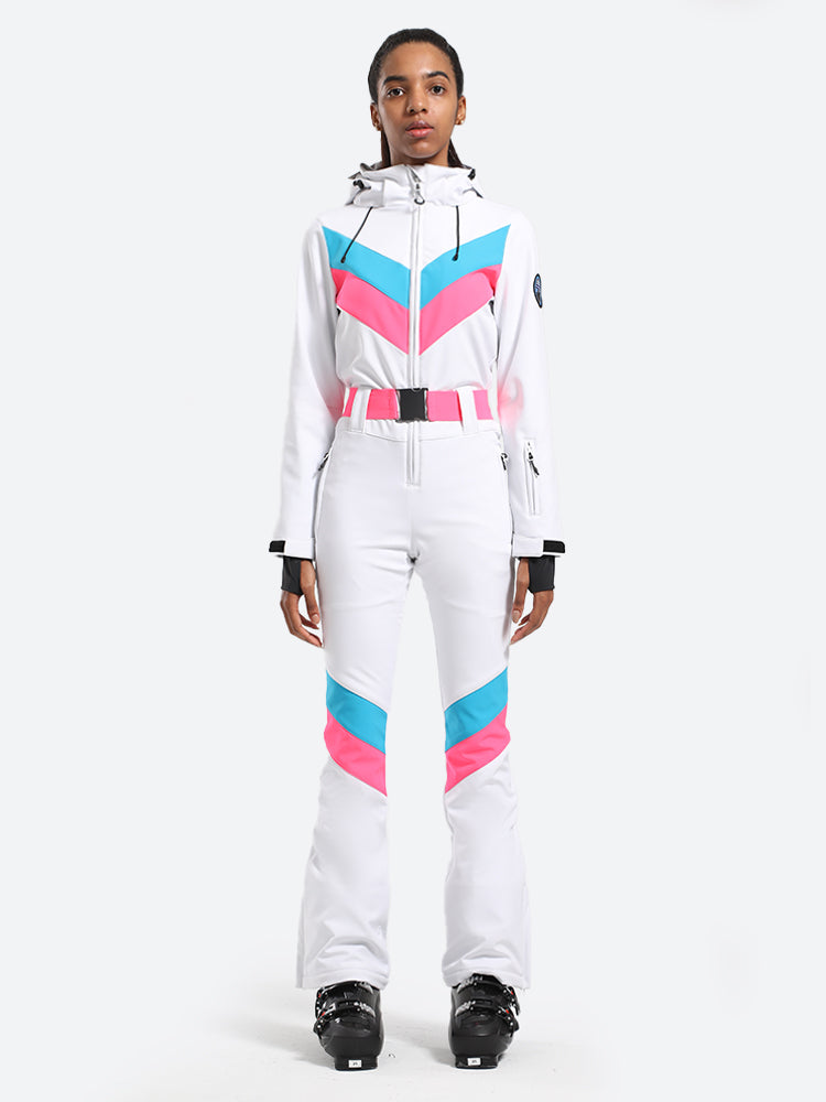 Over Ski Women's Stripe One Piece Ski Suit With Hood