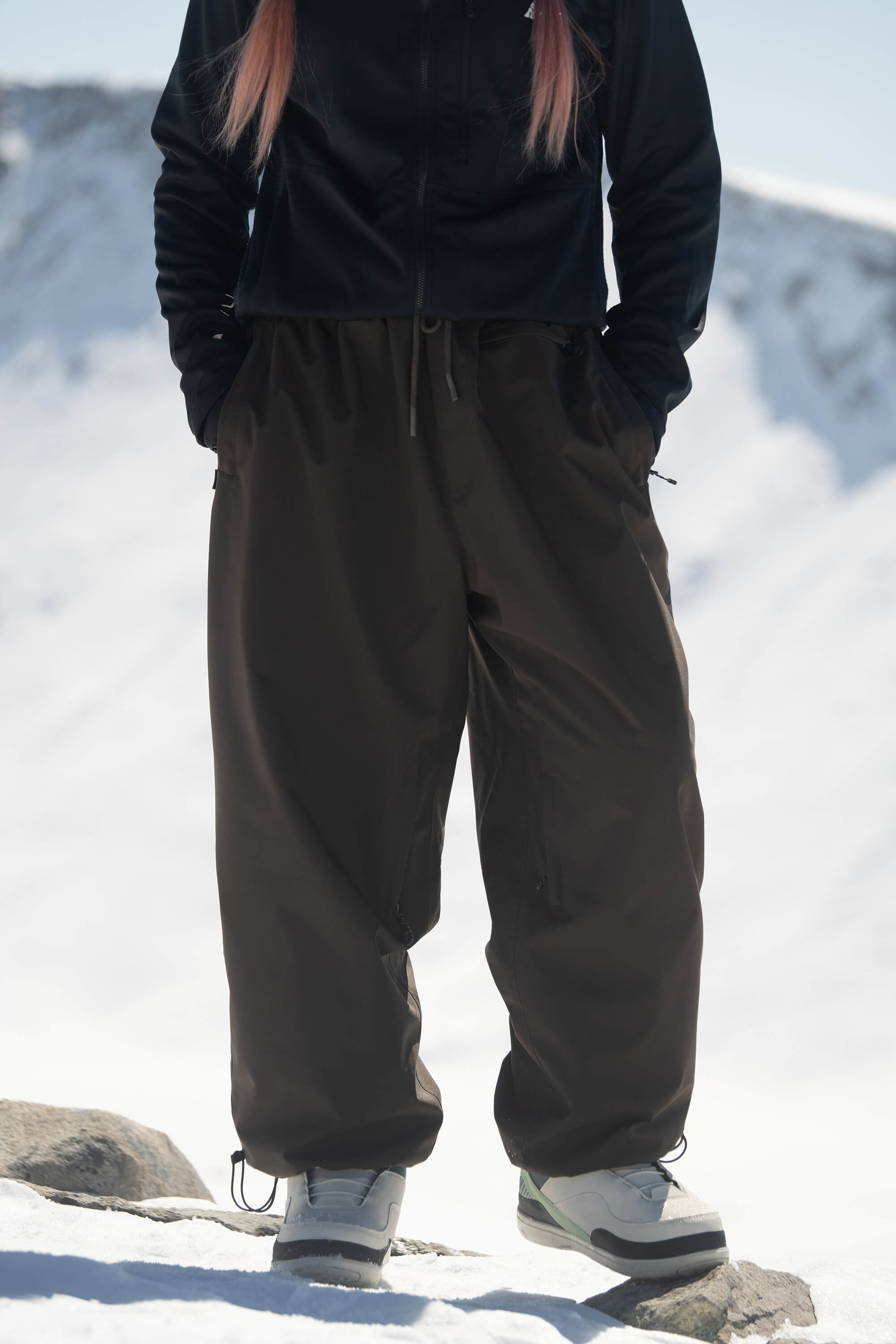 Women's Coffee Baggy Drawstring Durable Snow Pants