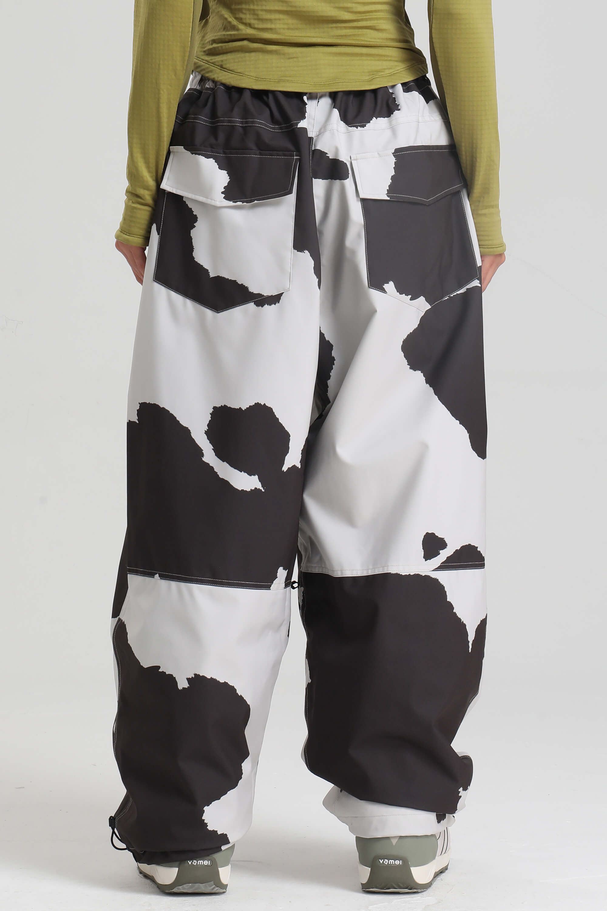 Women's Cow Print Baggy Drawstring Durable Snow Pants