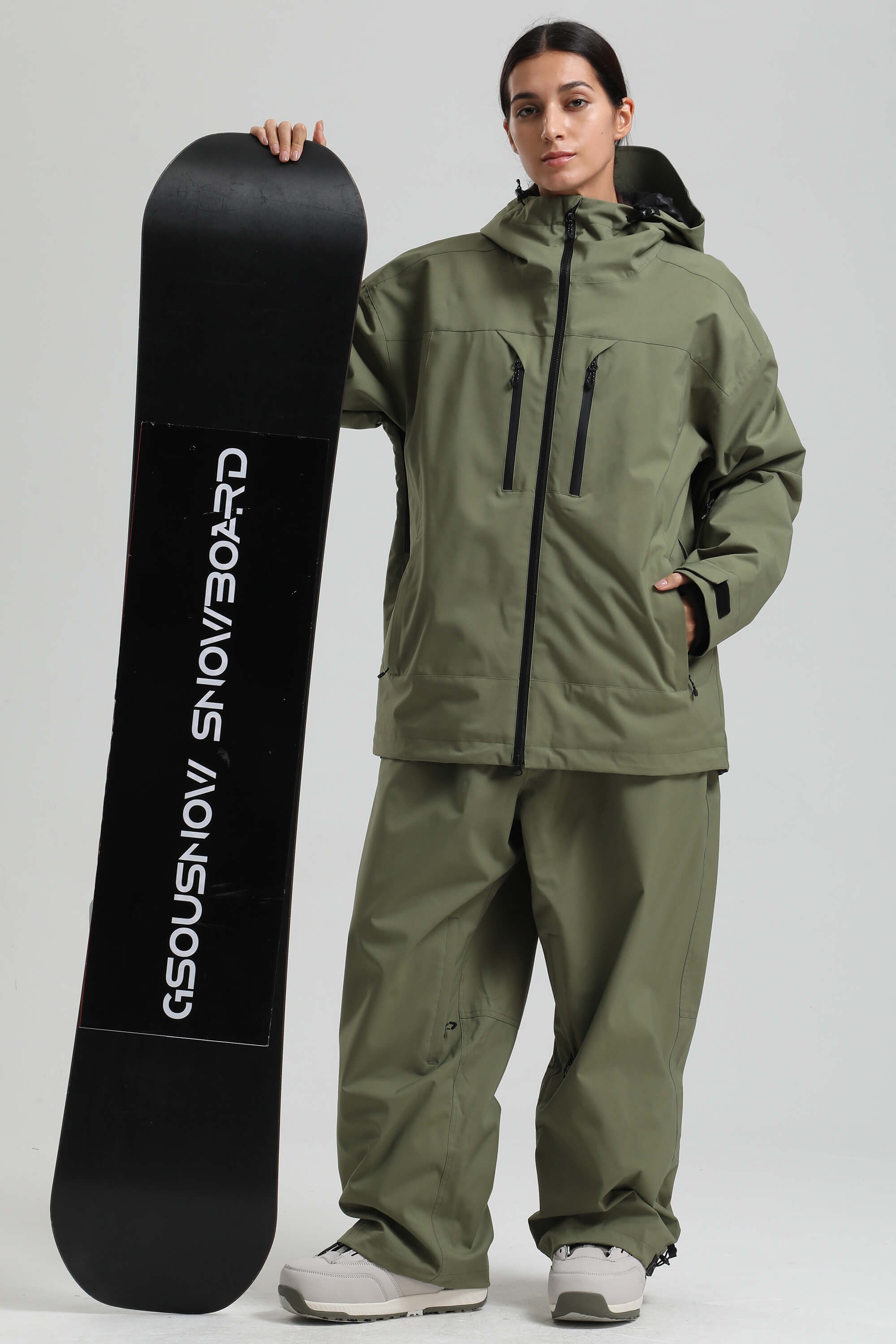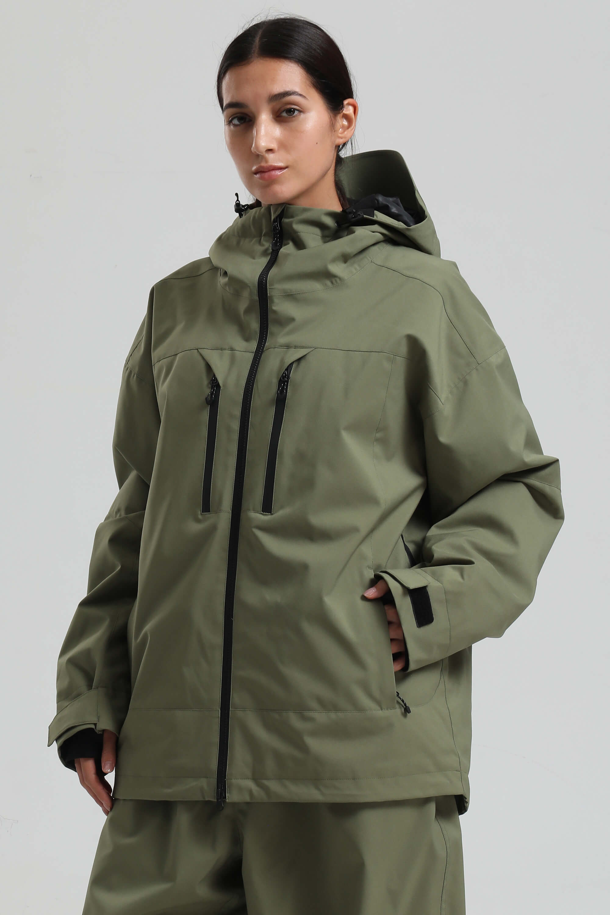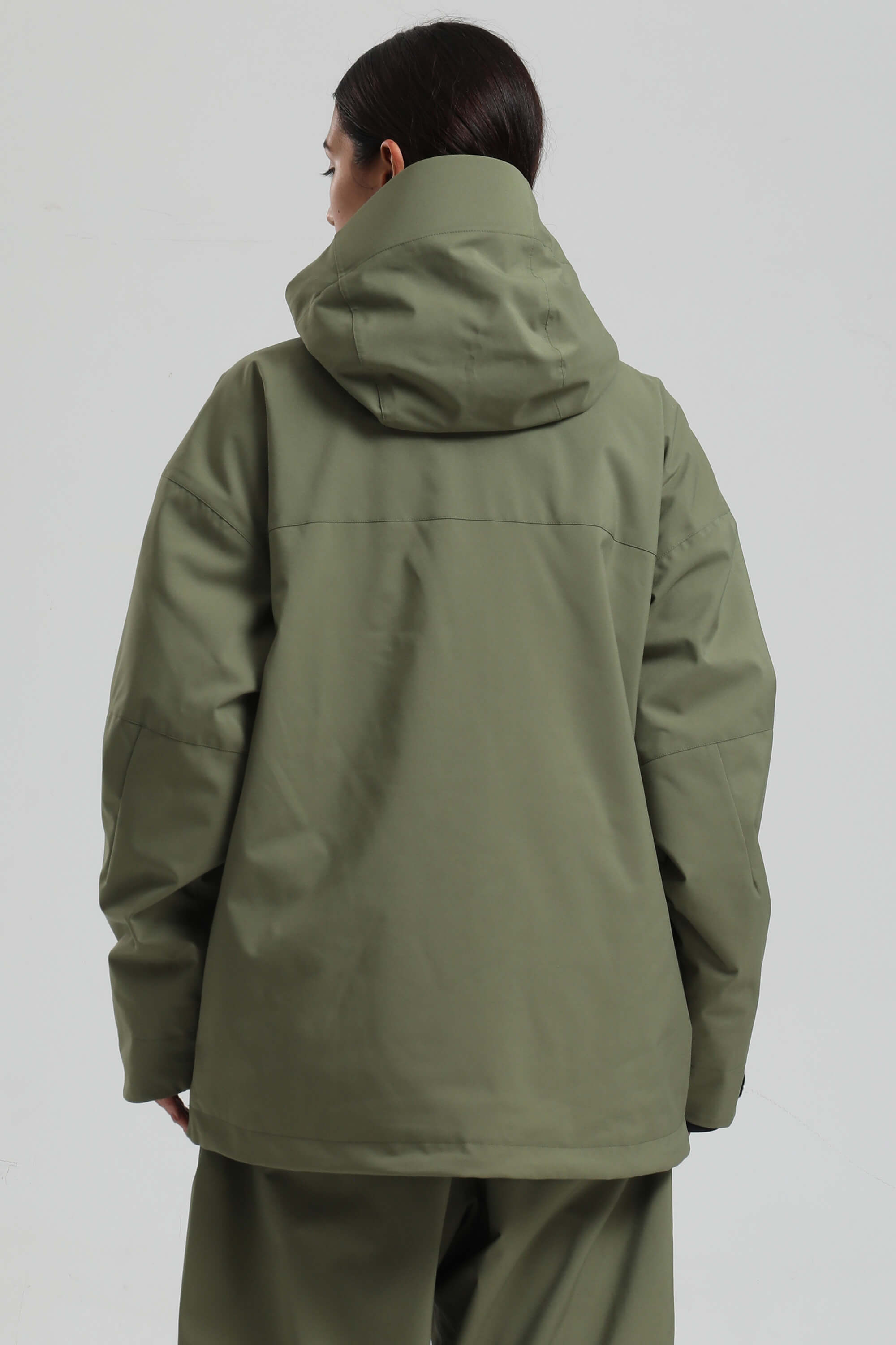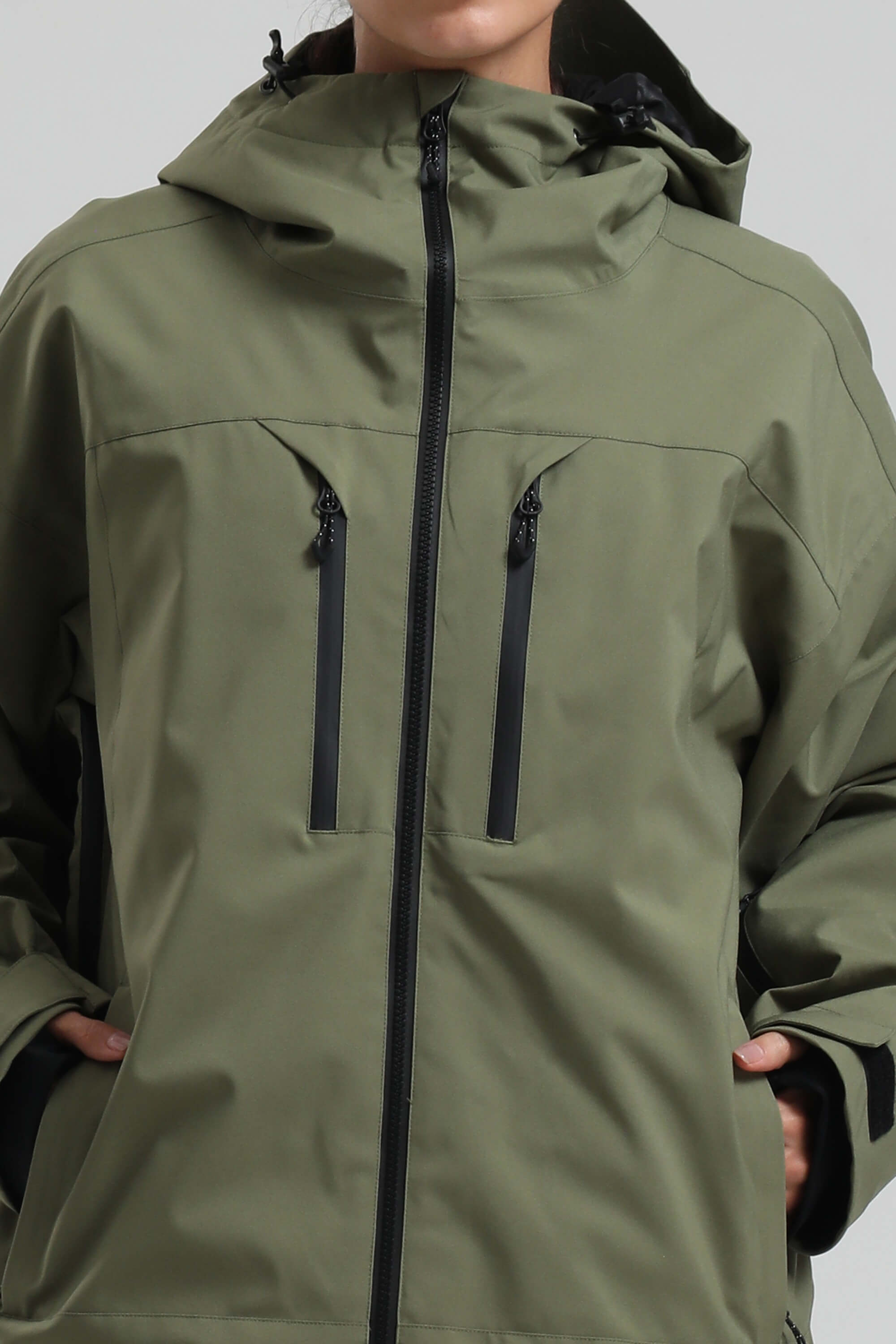 Women's Army Green Multi-Pocket Dual-Vent Waterproof Insulated Snow Jacket