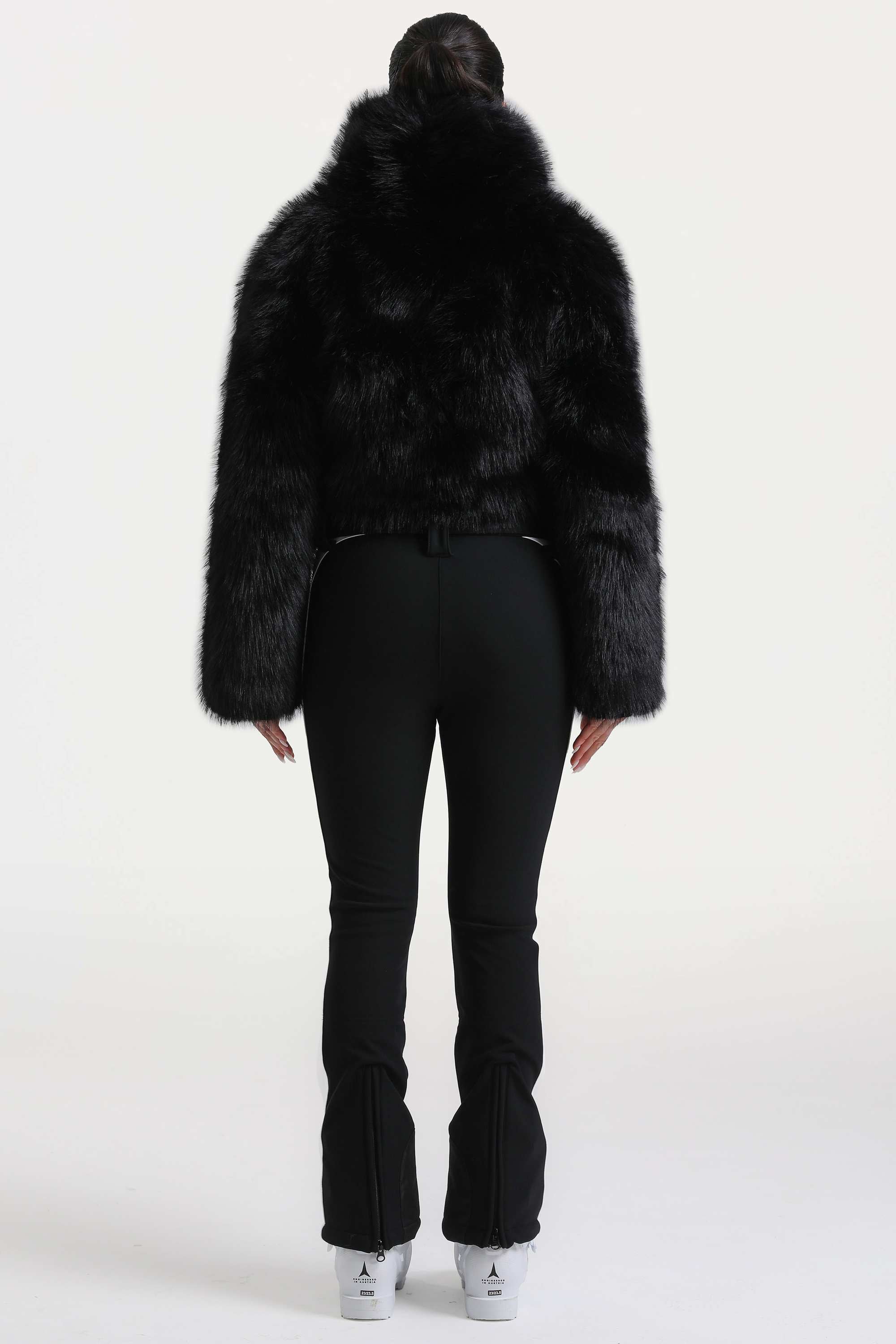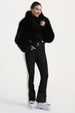 Women's Black Stylish Slim-Fit One-Piece Ski Suit with Detachable Faux Fox Fur Jacket & Flared Legs