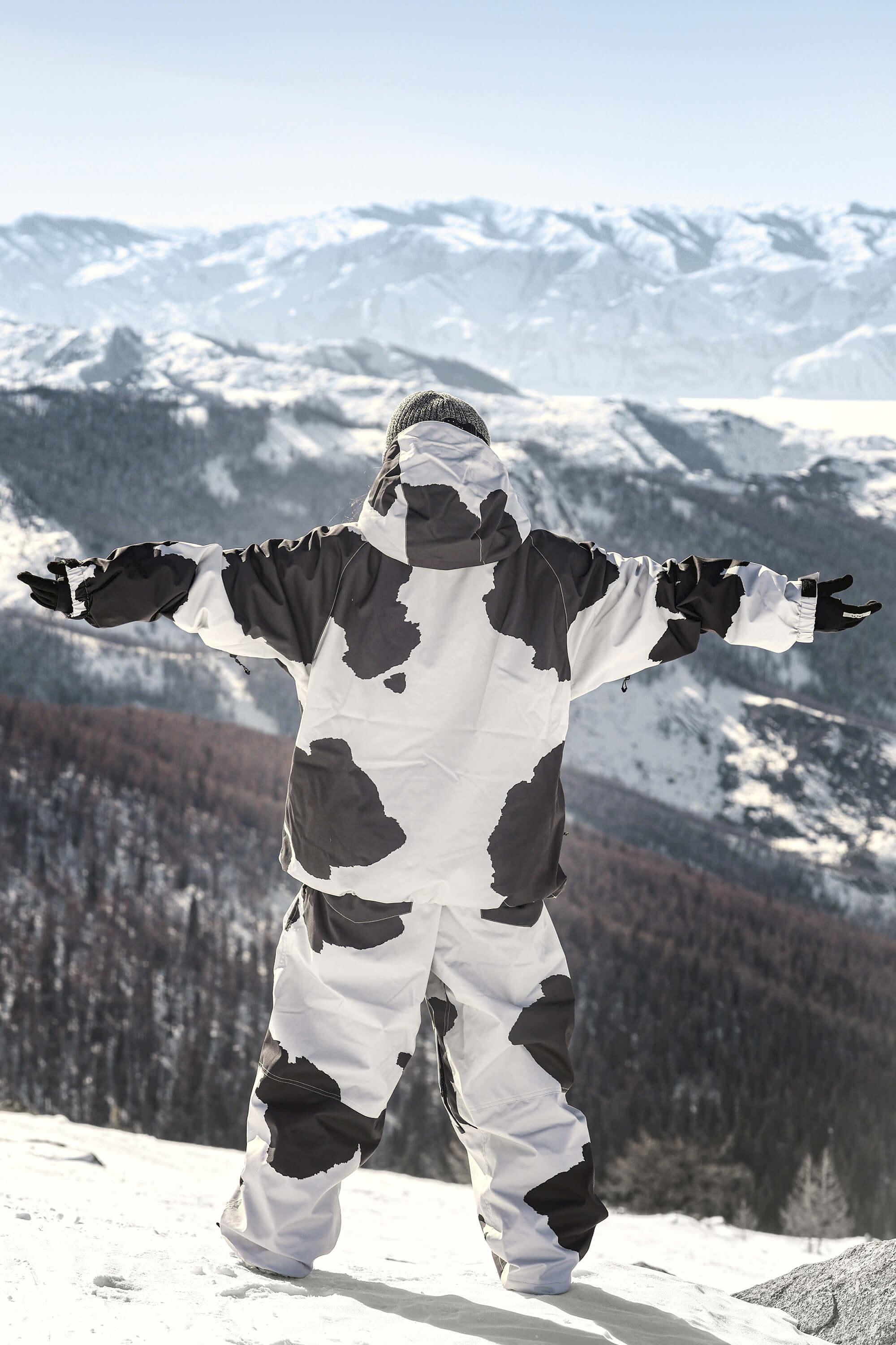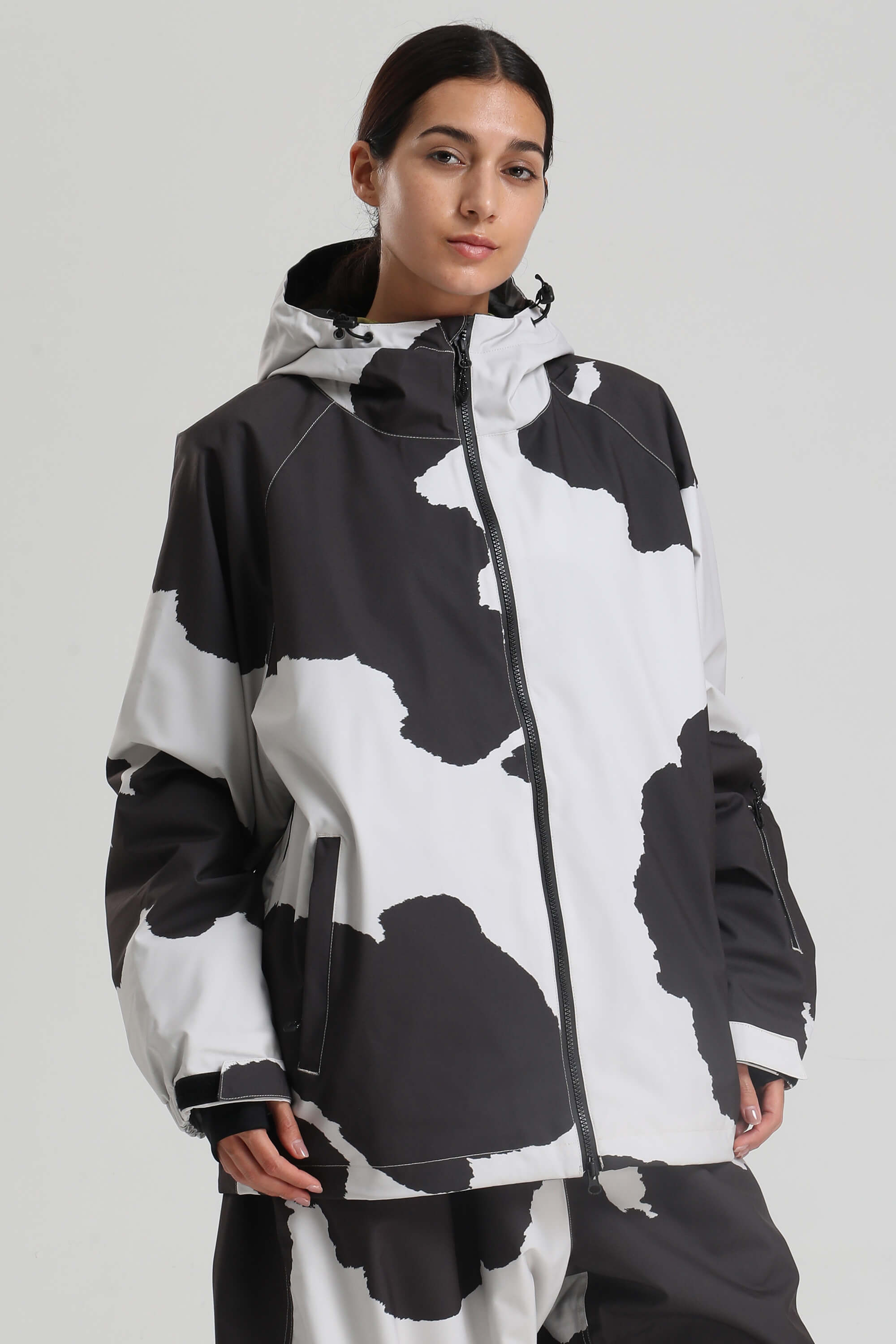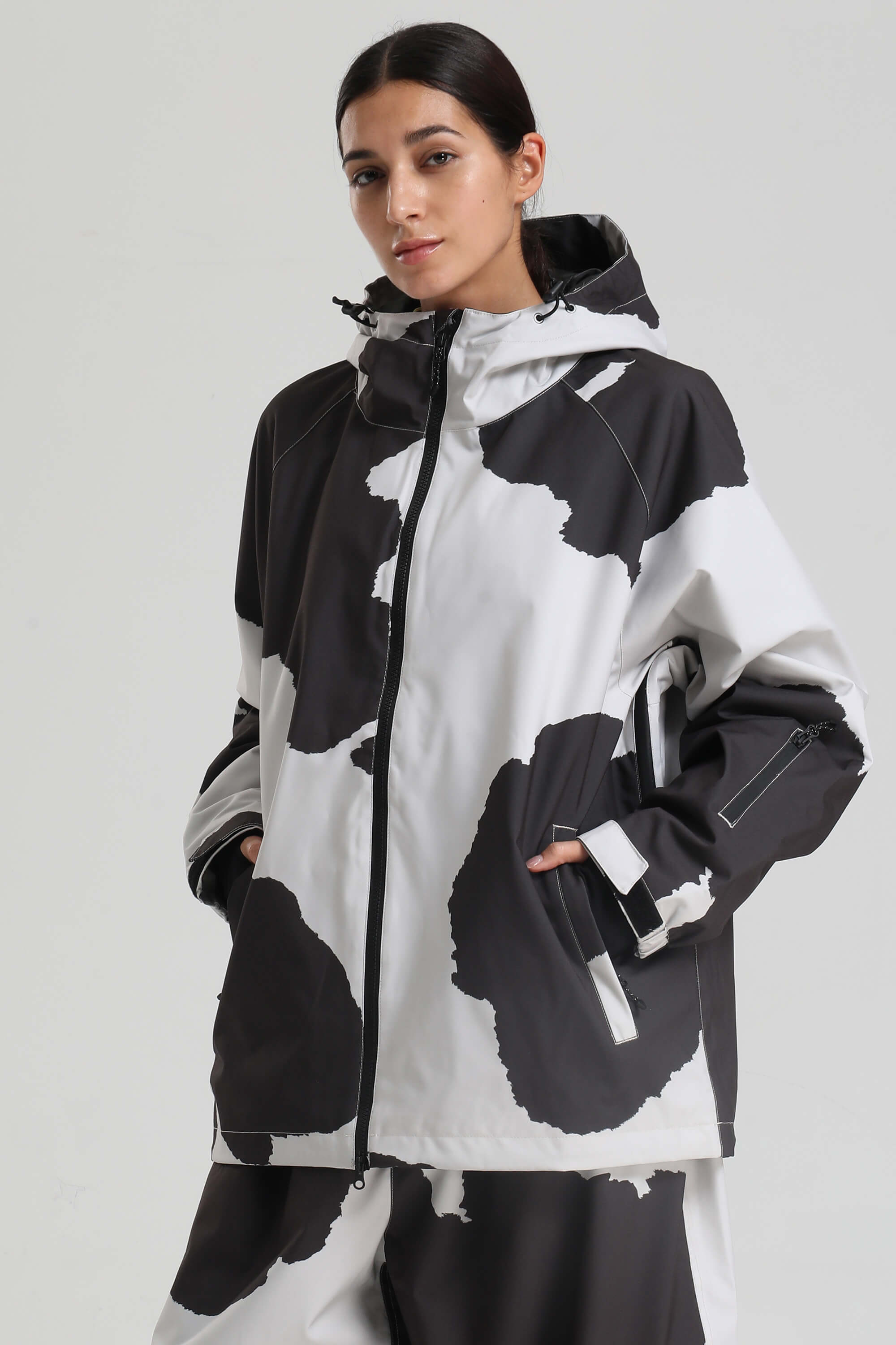 Women's Cow Print Dual-Vent Minimalist Waterproof Insulated Snow Jacket