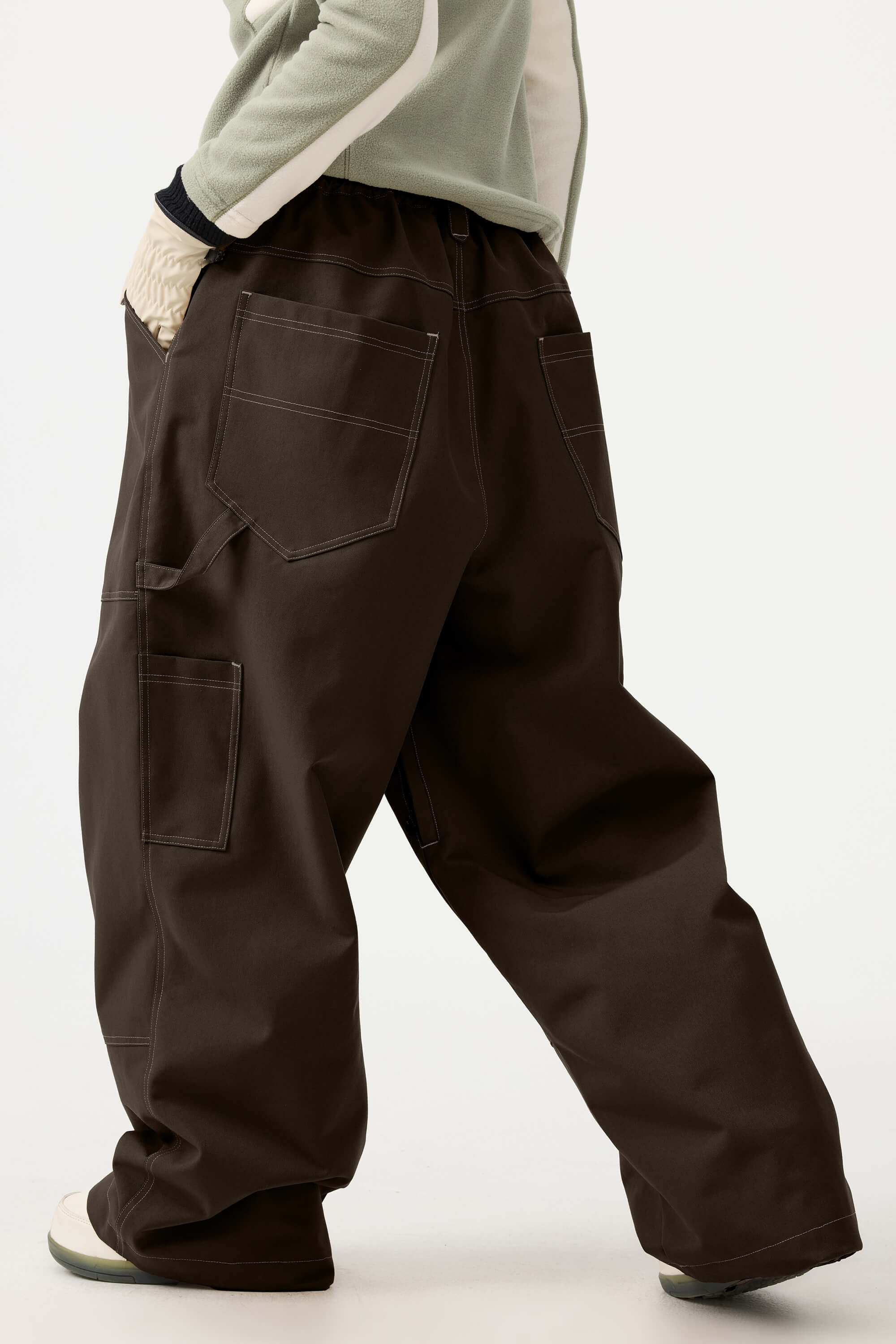 Women's Dark Brown Baggy Oxford Workwear Snow Pants