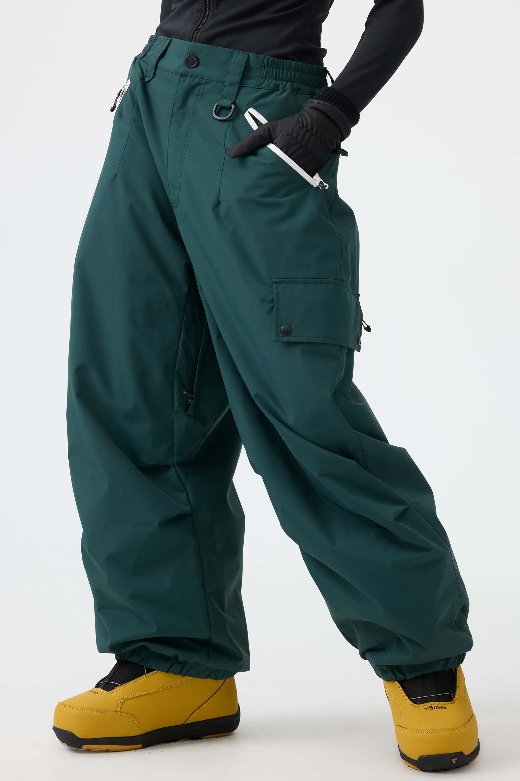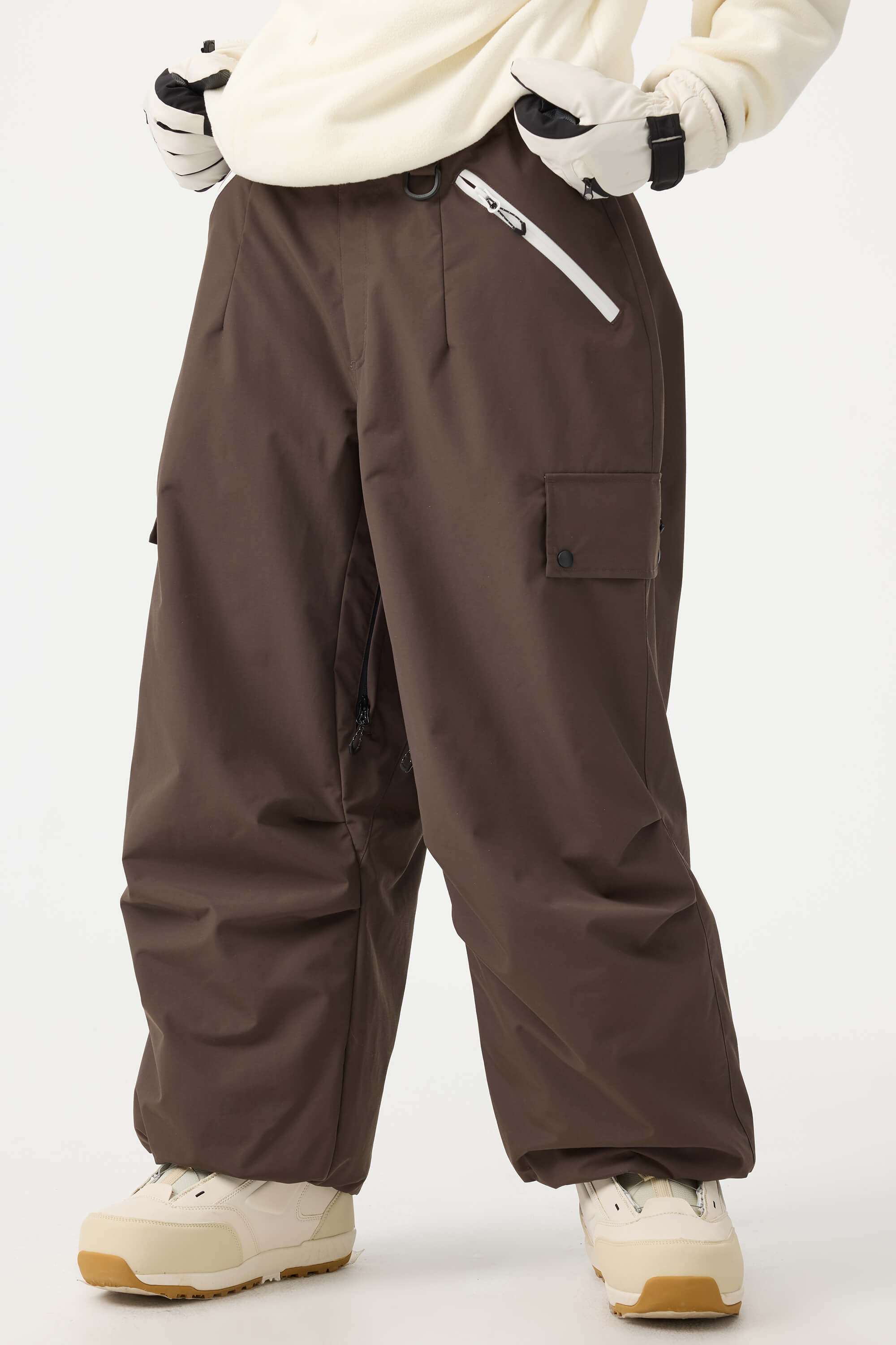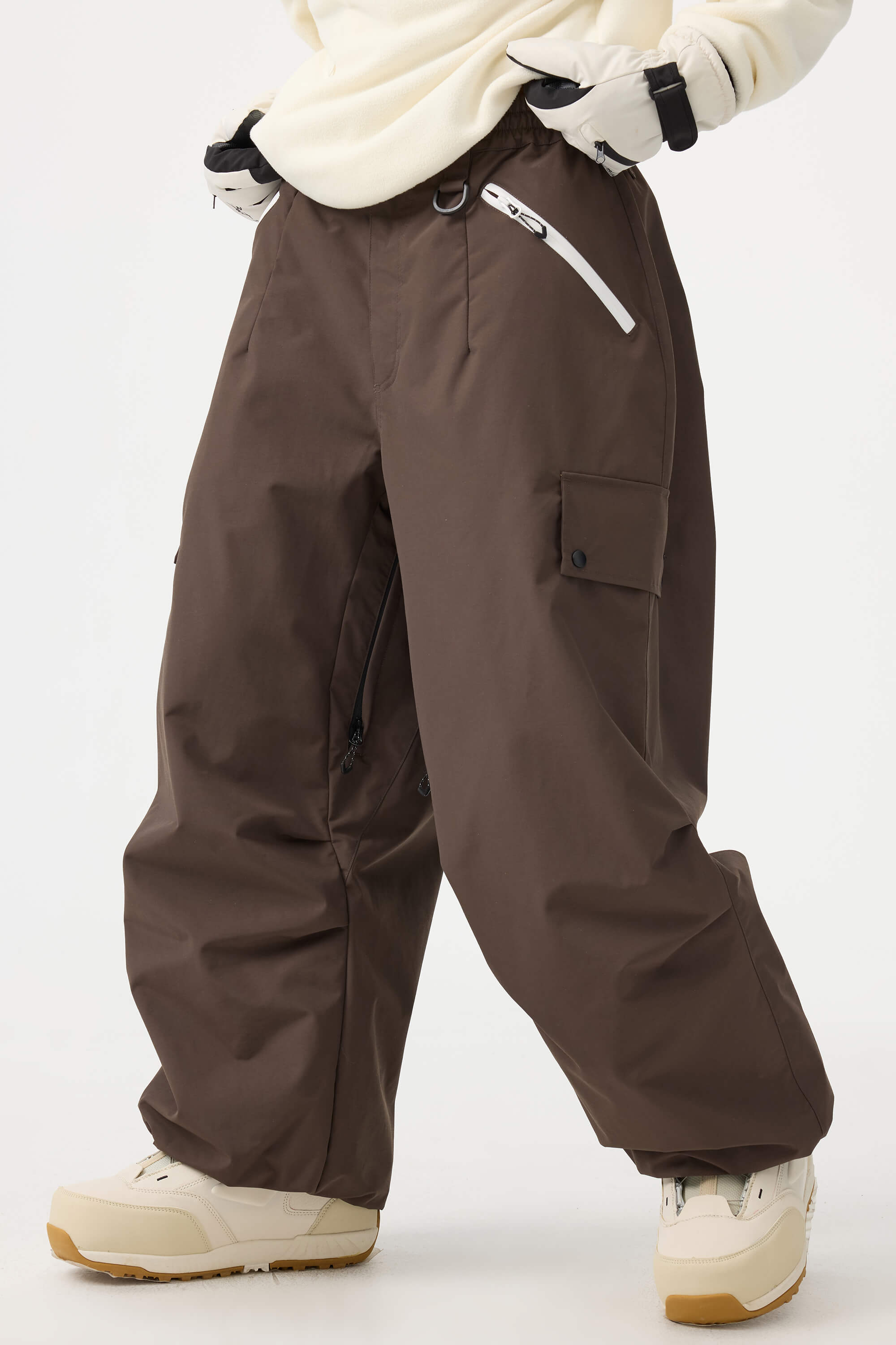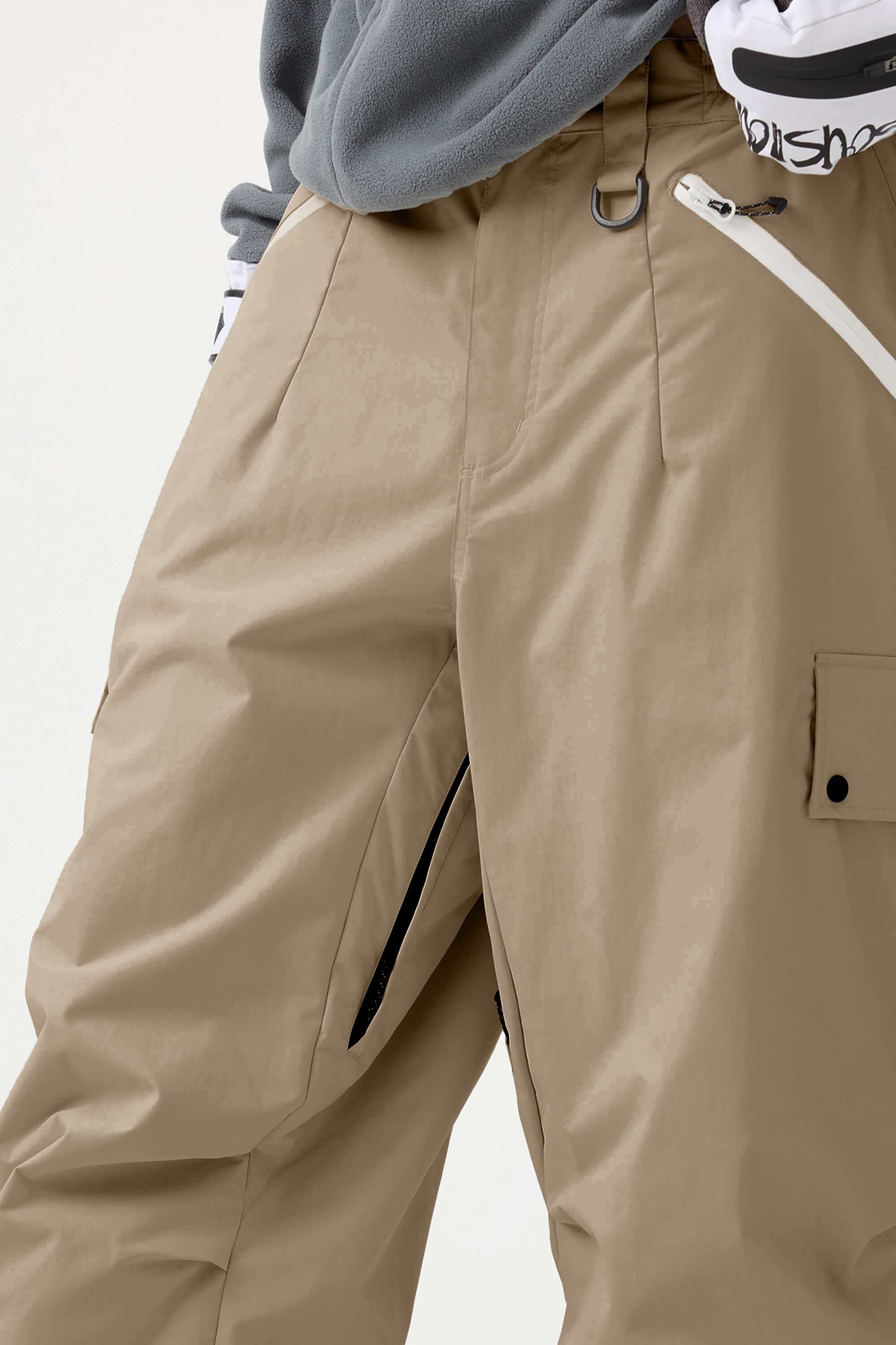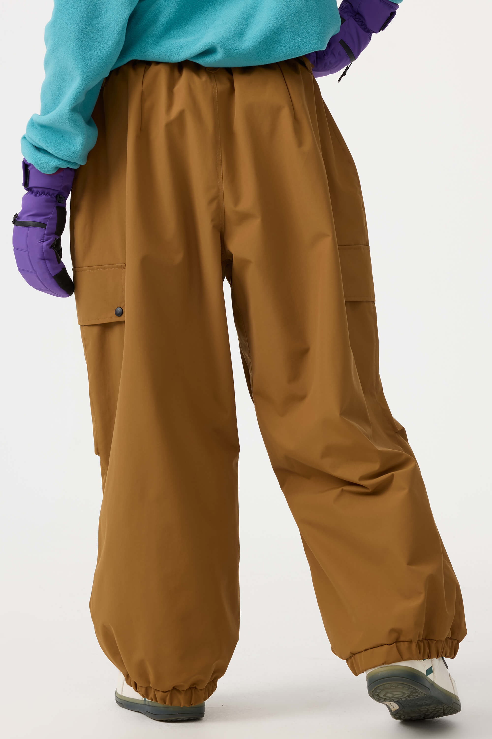 Women's Khaki Baggy Wear-resistant Waterproof Snow Pants