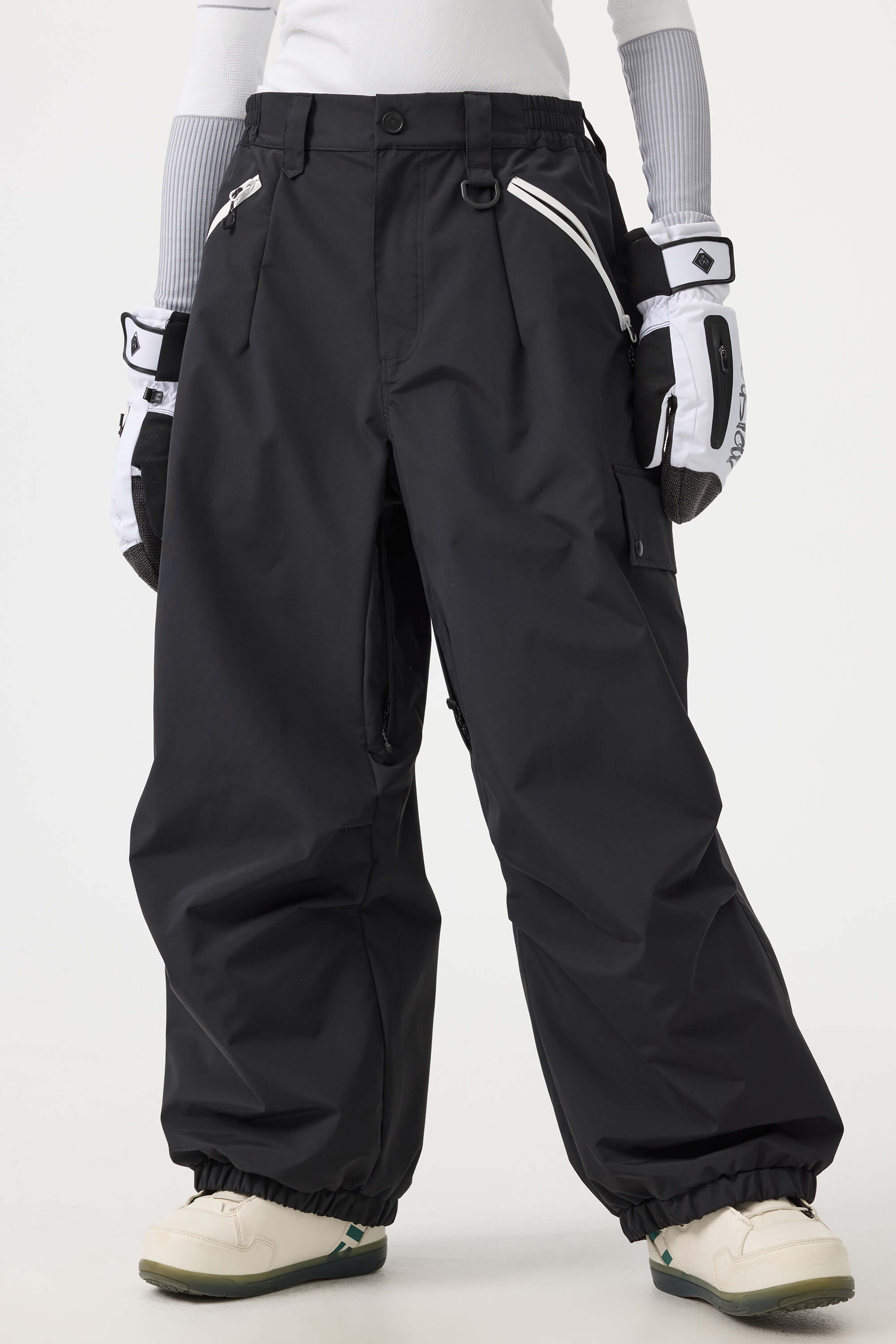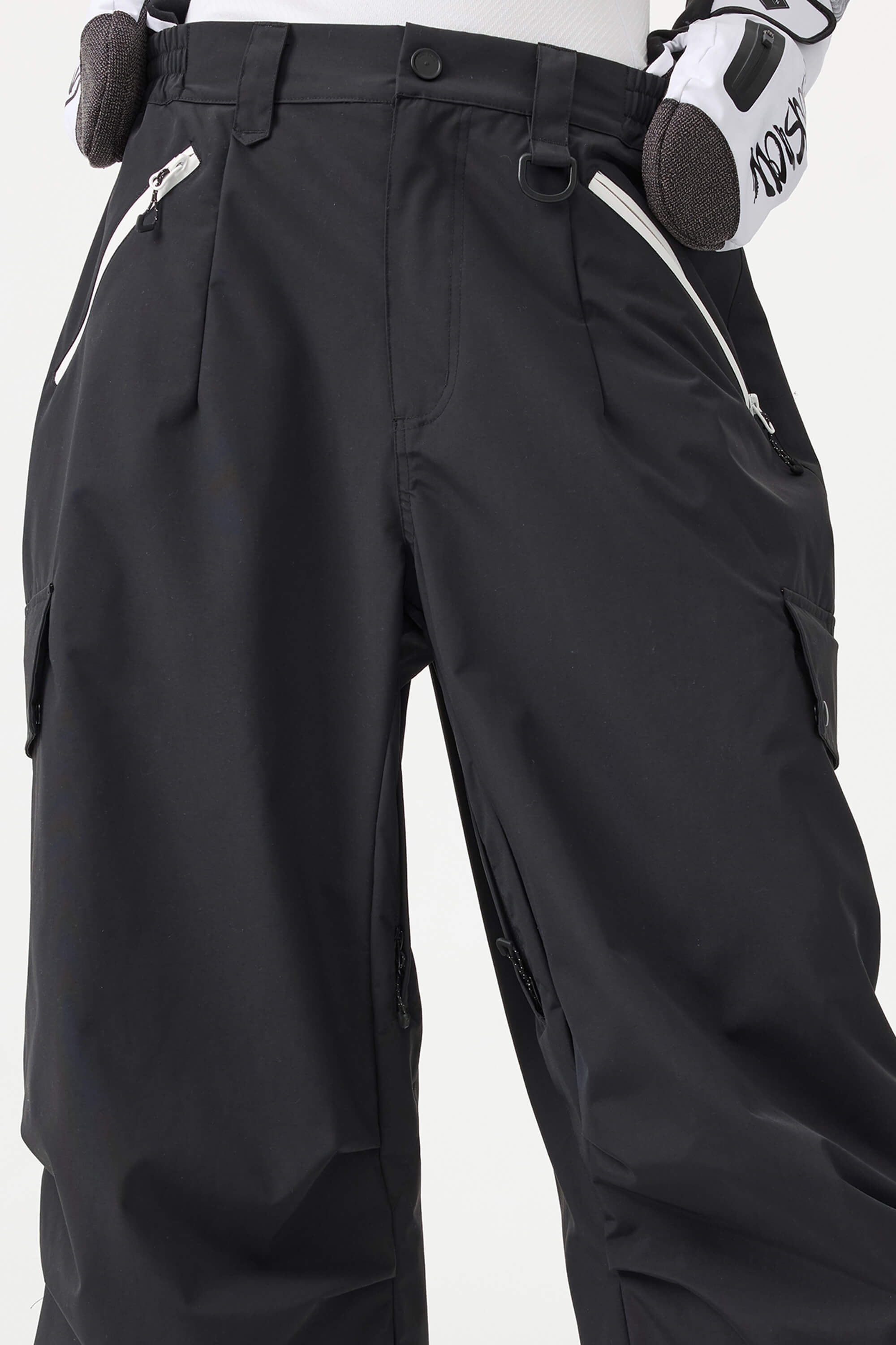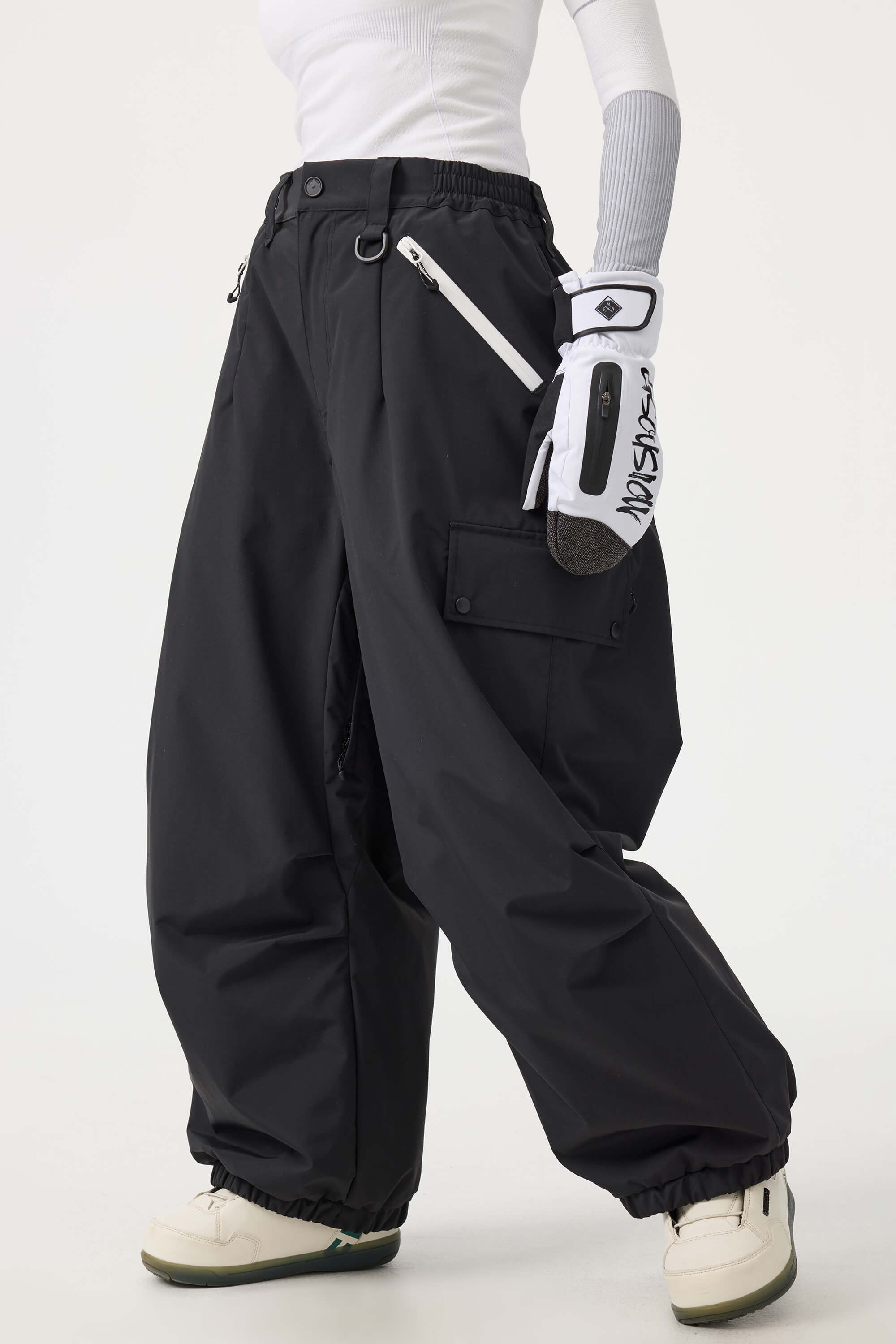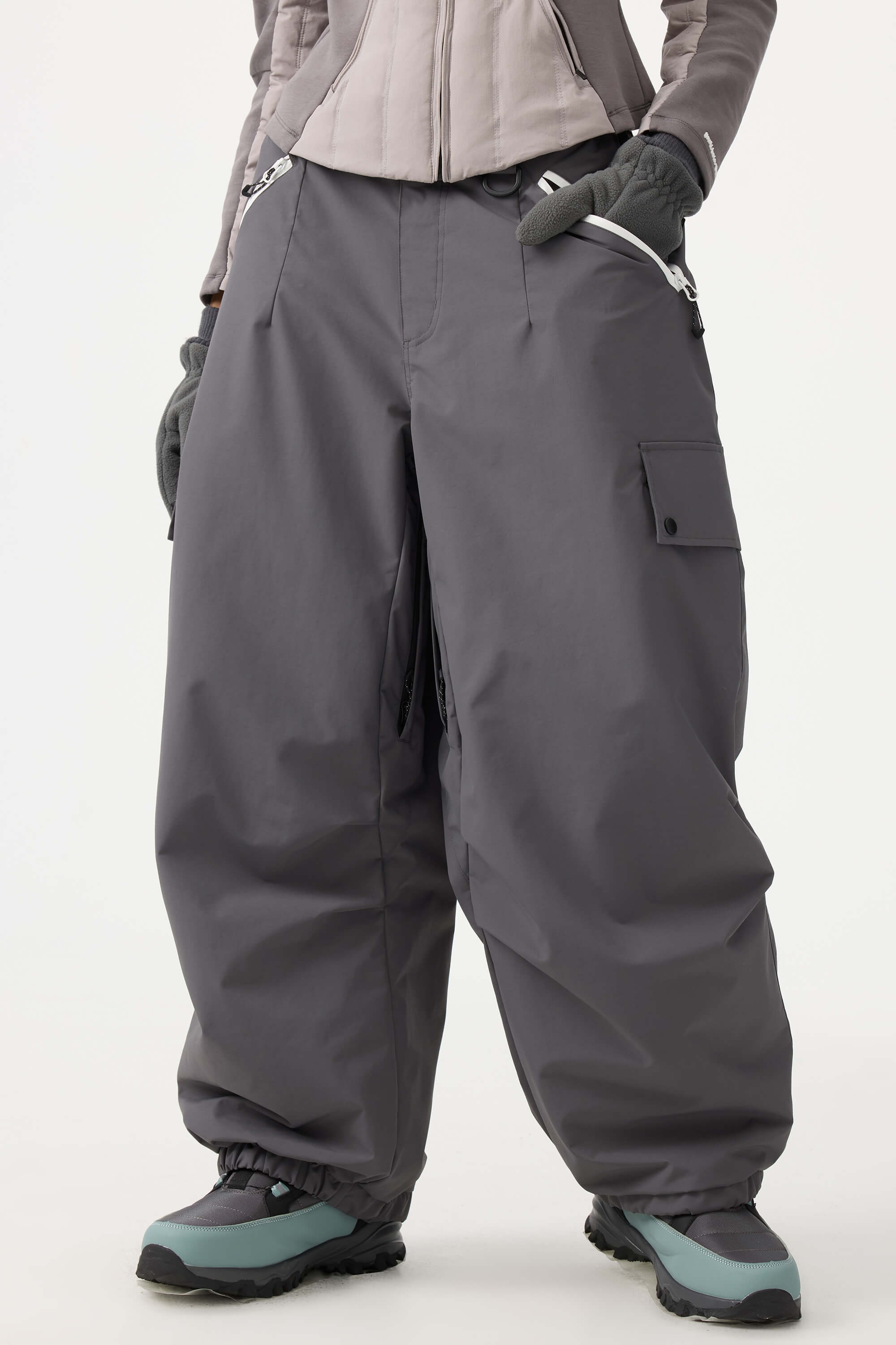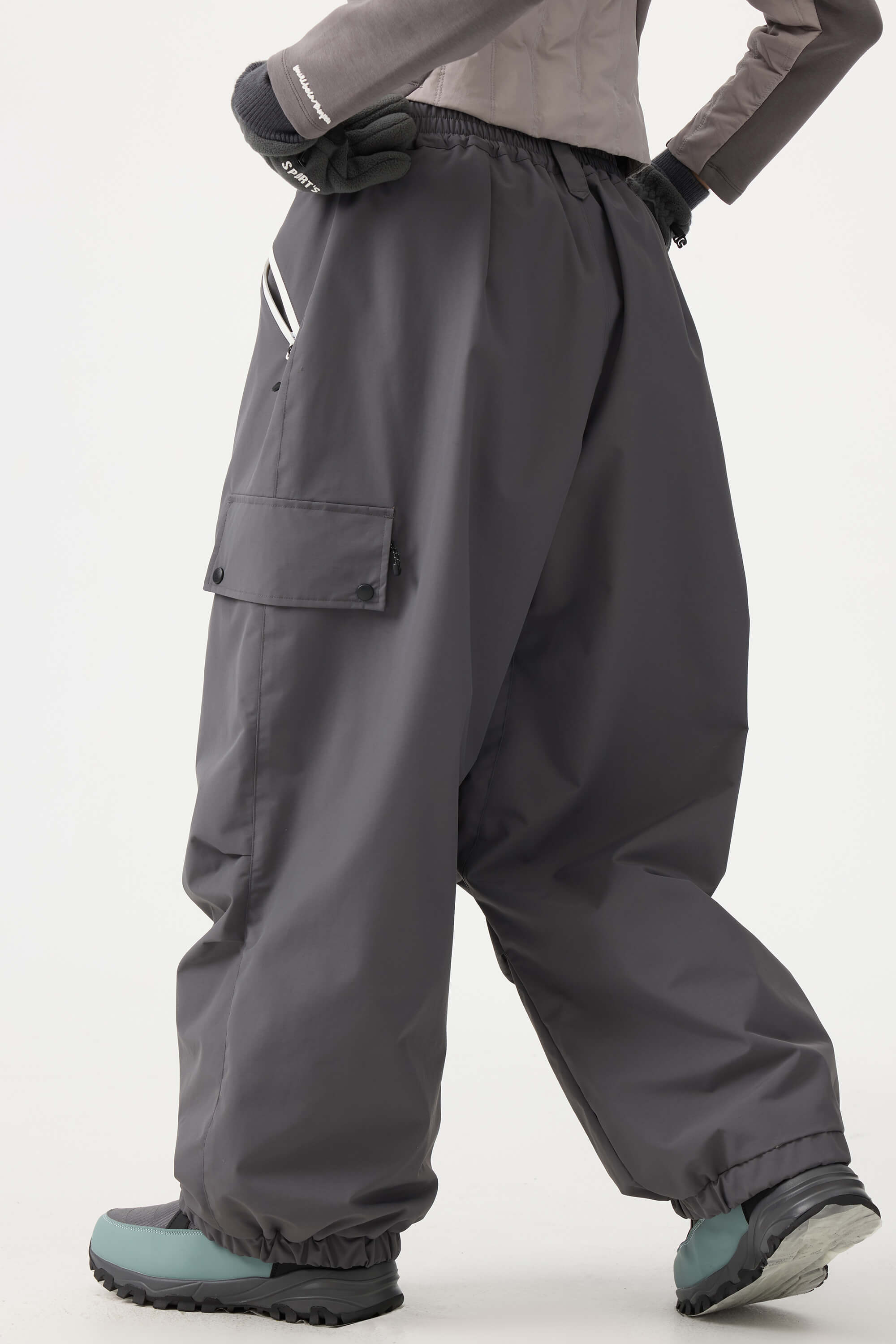 Women's Khaki Baggy Wear-resistant Waterproof Snow Pants