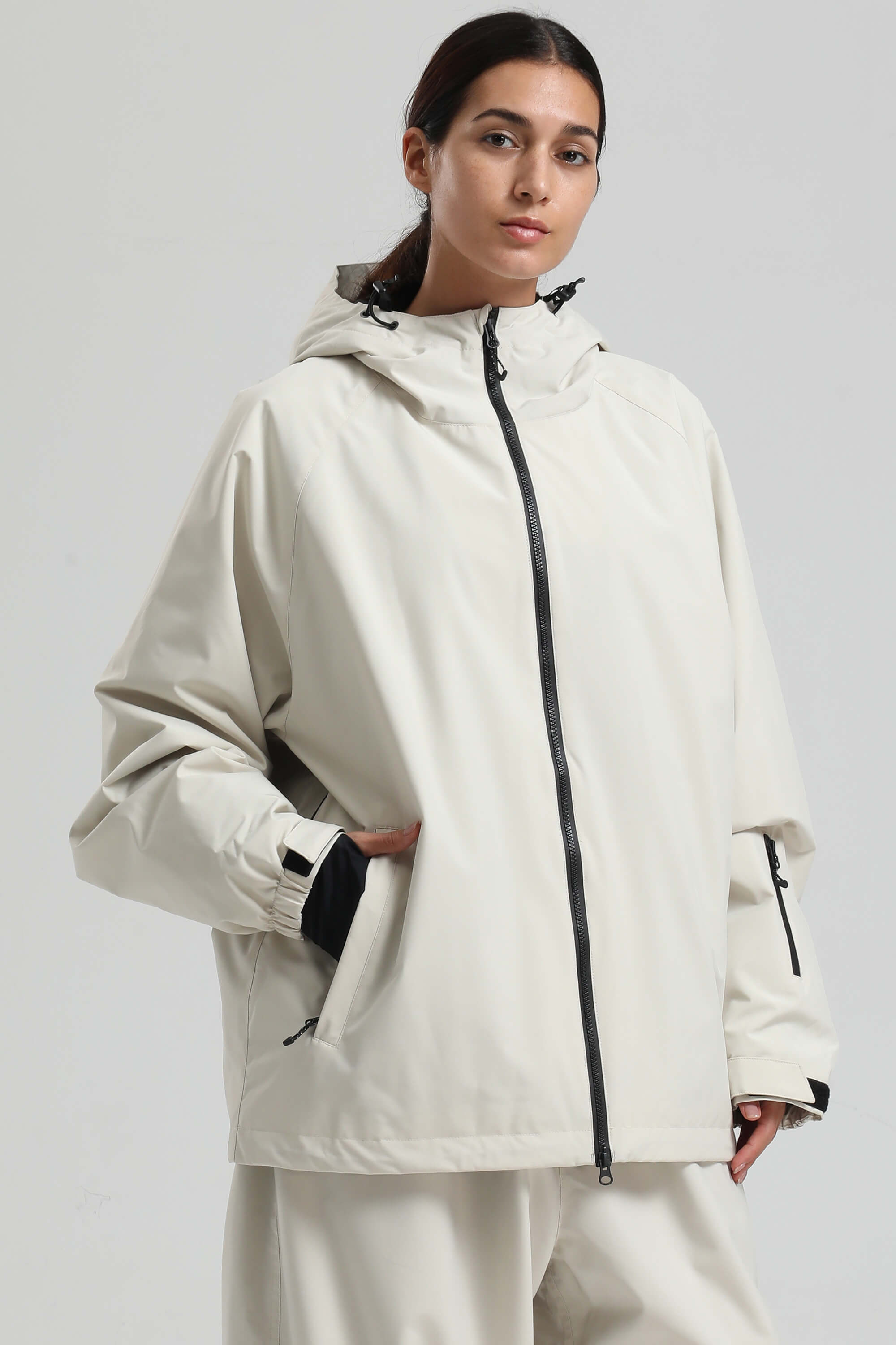 Women's Off White Dual-Vent Minimalist Waterproof Insulated Snow Jacket