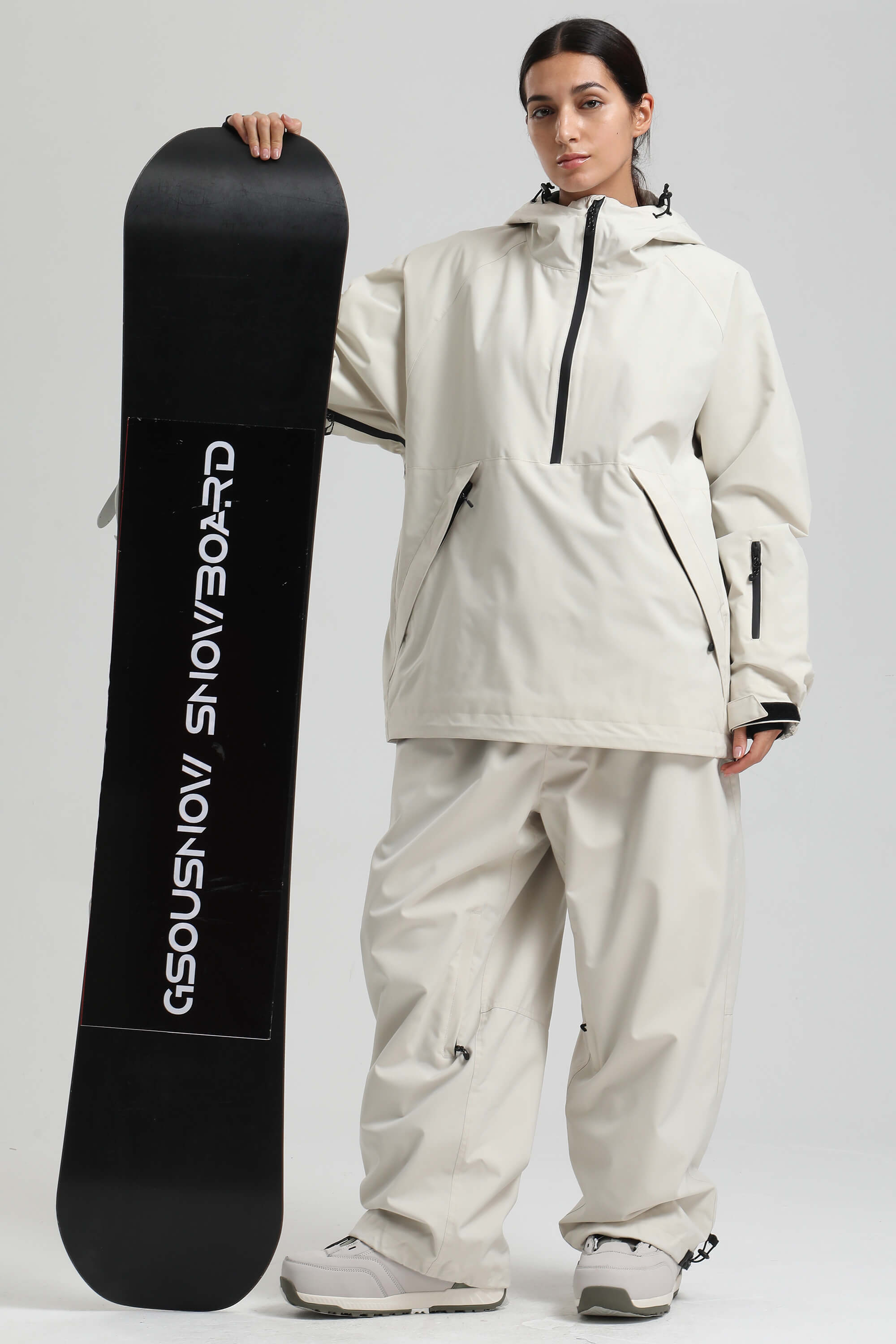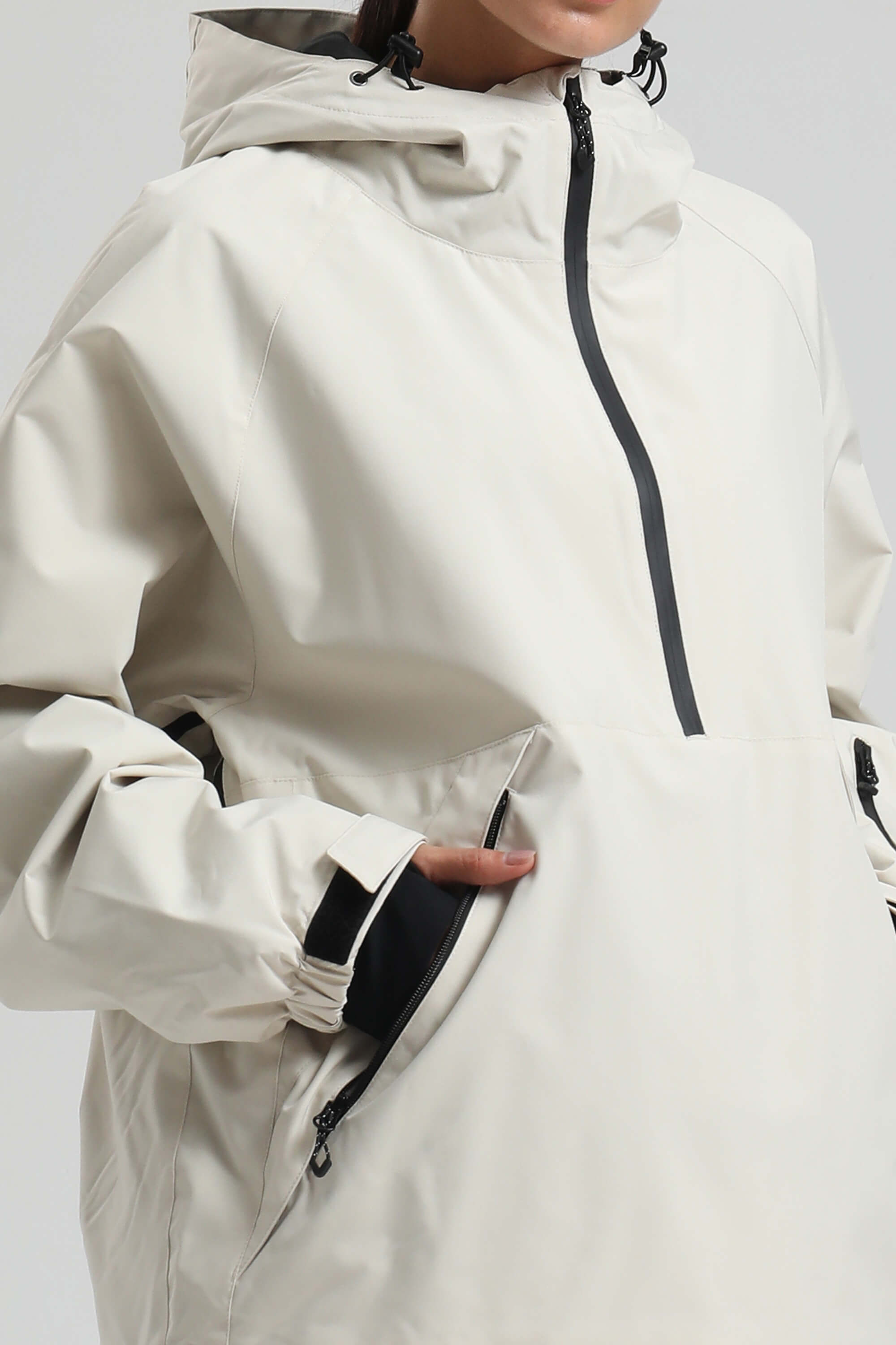 Women's Off White Minimalist Half-Zip Waterproof Insulated Snow Anorak