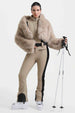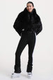 Women's White Stylish Slim-Fit One-Piece Ski Suit with Detachable Faux Fox Fur Jacket & Flared Legs